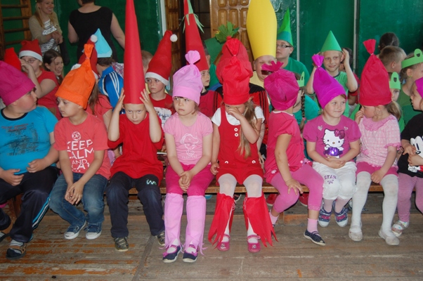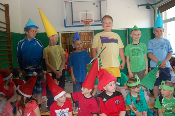 Po występach zaroiło się na sali gimnastycznej od krasnoludków, ponieważ nastąpił pokaz strojów w ramach konkursu na najciekawszy strój krasnoludka. Powstały bardzo pomysłowe i kolorowe przebrania. Na głowach królowały czapki: różnej wielkości, kształtu, koloru i z różnymi aplikacjami. Nie zabrakło również brody - białe, czarne, krótkie, długie; stroje luźne, dopasowane. Było prawie jak na pokazie mody tylko, że przeznaczonym dla „krasnoludków.” Królował kolor czerwony i zielony. Uczniowie wykazali się oryginalnością i pomysłowością, ale najmłodsi chyba najwdzięczniej prezentowali swoje kreacje. Jury miało trudne zadanie, żeby wyłonić zwycięzców.