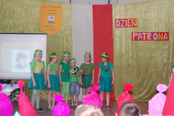 23 maja 2014 roku obchodziliśmy Dzień Patrona. Na początku spotkania obejrzeliśmy prezentację multimedialną o patronie naszej szkoły. Następnie uczniowie z poszczególnych klas zaprezentowali wybrane utwory Marii Konopnickiej. Pierwszoklasiści wybrali utwór „Na zasadzce”, drugoklasiści „Pana Zielonkę”, trzecioklasiści „O krasnoludkach i o sierotce Marysi”. Uczennice z IV klasy przeczytały utwór „Sposób na laleczkę”, piątoklasiści przedstawili „Stefka Burczymuchę”, zaś szóstoklasiści zaprezentowali utwór „Muchy Samochwały”.