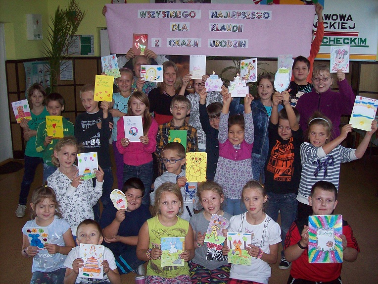 Samorząd Uczniowski wziął udział w akcji "Poczta Dzieci -Dzieciom", której organizatorem jest Fundacja "Portal Fm -Pomagamy Dzieciom". Uczniowie samodzielnie wykonali kartki urodzinowe dla chorej Klaudii, która 25 września obchodzi swoje 8 urodziny.