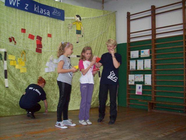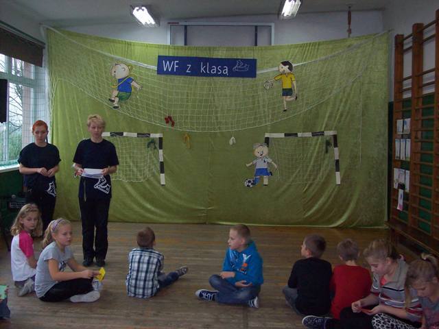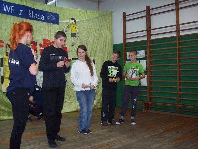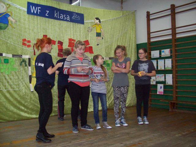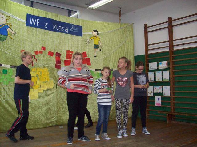 Koordynator programu pani Iwona Grabowska podczas spotkania grona pedagogiczne zapoznała nauczycieli, wychowawców z celami i założeniami programu. Zaproponowała również pytania: 1) Czego nie lubisz w lekcji wf?, 2) Co lubisz w lekcji wf?, 3) Co byś zmienił?, 4) Propozycje udoskonalenia lekcji wf, na które postarają się odpowiedzieć uczniowie podczas klasowych debat.