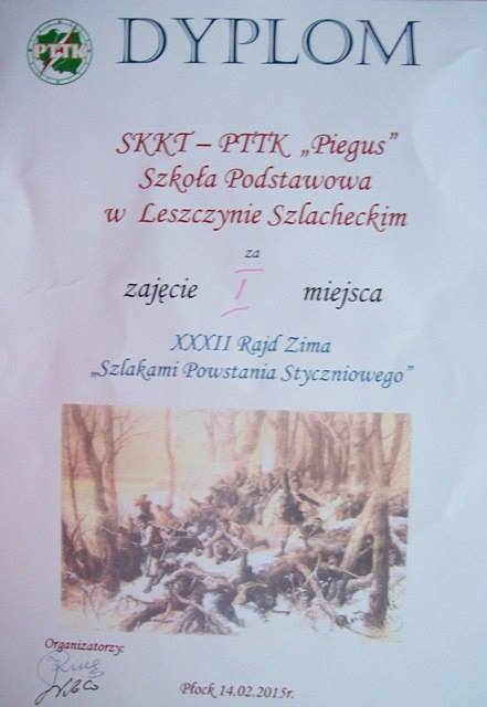 14 lutego okazał się dniem szczęśliwym dla leszczyńskich „Piegusów” nie tylko ze względu na Walentynki i bardzo słoneczny dzień. Udało nam się zająć I miejsce w XXXII Rajdzie Zima „Szlakami Powstania Styczniowego.” „Piegusy reprezentowała bardzo silna ekipa licząca z paniami 26 osób.