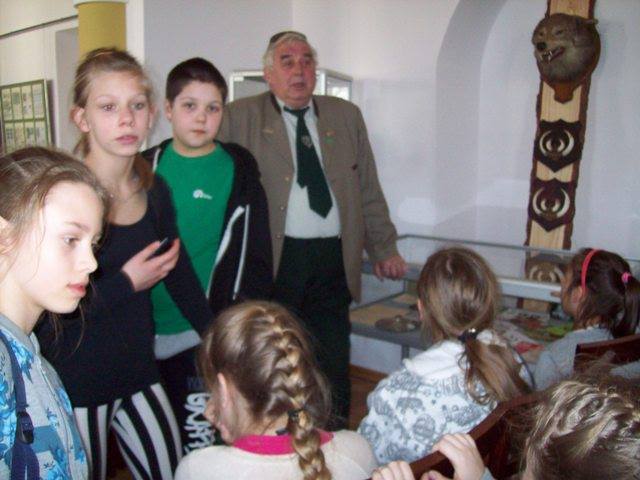 Po rajdzie w ramach akcji „Ożywić pola”odwiedziliśmy Książnicę Płocką w celu zwiedzenia wystawy „Być myśliwym…” , która została przygotowana przez ZO PZŁ w Płocku Komisję Etyki, Tradycji i Zwyczajów Łowieckich. Eksponaty zostały udostępnione ze zbiorów prywatnych członków Klubu Kolekcjonera i Kultury Łowieckiej. Po wystawie oprowadził nas członek Koła Łowieckiego „Kniaź” pan J. Dydyna, który opowiedział nam wiele ciekawych historii związanych z łowiectwem. Poznaliśmy historię patrona myśliwych –św. Huberta. Zapoznaliśmy się z kulturą i tradycjami łowieckimi.