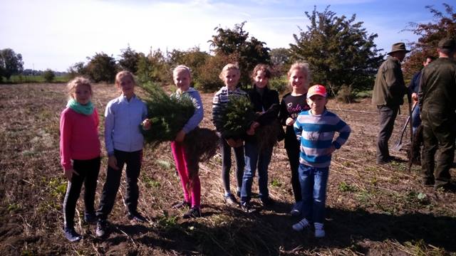Wspólnie z członkami KŁ "Kniaź" i pracownikami Nadleśnictwa Płock w ramach akcji "Ożywić pola -rok bażanta" utworzyliśmy remizę śródpolną o powierzchni 2400m2 w miejscowości Leszczyn Księży. Posadziliśmy: świerk (50szt.), modrzew (50szt.), dąb (50szt.), śliwa aucza (150szt), dzika jabłoń (100szt.), dziki bez (50szt), trzmielina (150szt), dzika wiśnia (100szt), głóg (100szt), brzoza (50szt). Łącznie 1000 sadzonek drzew i krzewów.