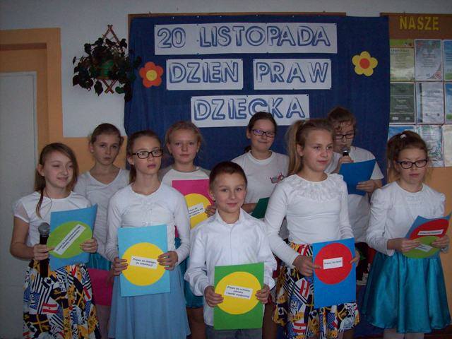 W naszej szkole odbyło się w tym dniu Wielkie Święto Dzieci. Samorząd Uczniowski wierszem, piosenką i tańcem przypomniał kolegom i koleżankom o prawach dzieci. Analizowano, co oznaczają poszczególne prawa, jak z nich korzystać, kto ich powinien przestrzegać. Ponadto wszyscy zgodnie zauważyli, że nie możemy również zapominać o obowiązkach.