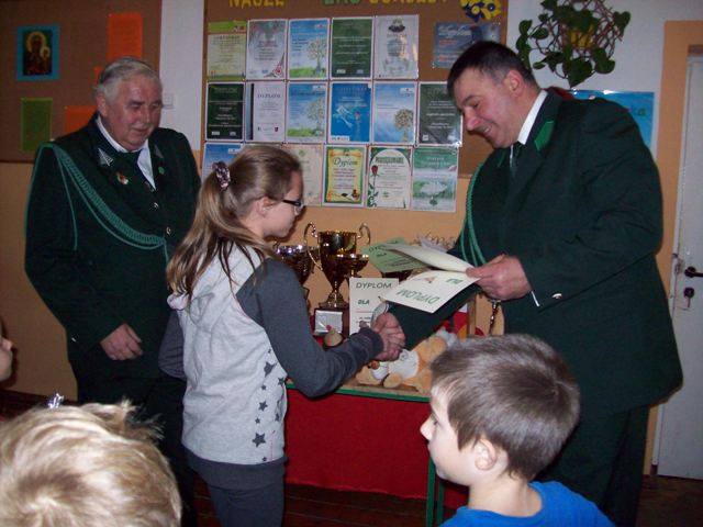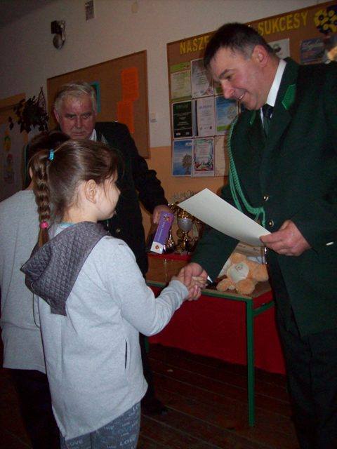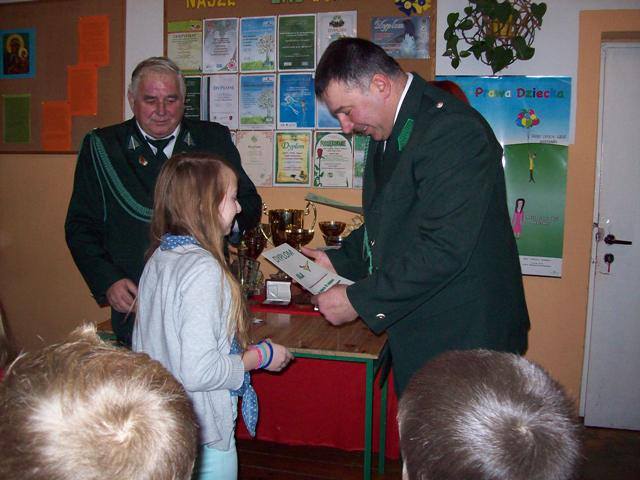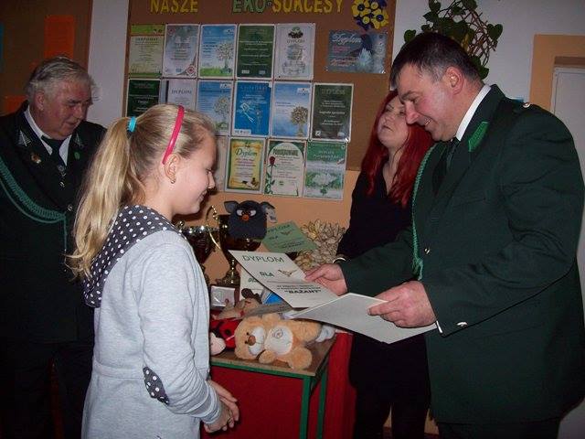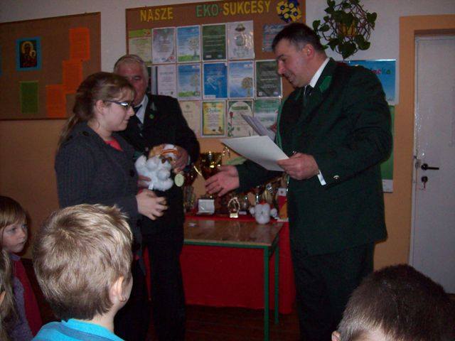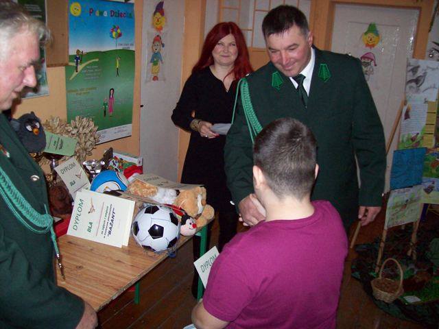 Rozstrzygnięcie konkursów: plastycznego pt."Bażant" i "Zbieramy karmę - kasztany, żołędzie". Organizatorem i fundatorem nagród było Koło Łowieckie „Kniaź”.