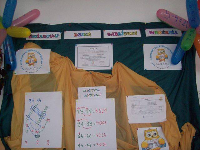 Samorząd Uczniowski z nauczycielem matematyki zorganizował kącik tematyczny, rozwieszono m. in. plakaty, zagadki dotyczące tabliczki mnożenia. 30 września każdy mógł wziąć udział w egzaminie z tabliczki mnożenia. Patrol Egzaminacyjny w składzie: Wiktoria Drążewska z kl. V i Ola Spadło z kl. V zadawał pytania. Ten kto poradził sobie
