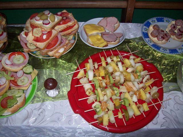 Śniadanie przebiegało w miłej i kulturalnej atmosferze. Wszystko smakowało lepiej w grupie, nikt nie grymasił, nawet nasze „szkolne niejadki”. Bo i menu było zróżnicowane: kolorowe kanapki, twarożki, deska serów, miód, płatki z naturalnym jogurtem, owocowo-warzywne szaszłyki, sałatki i surówki.