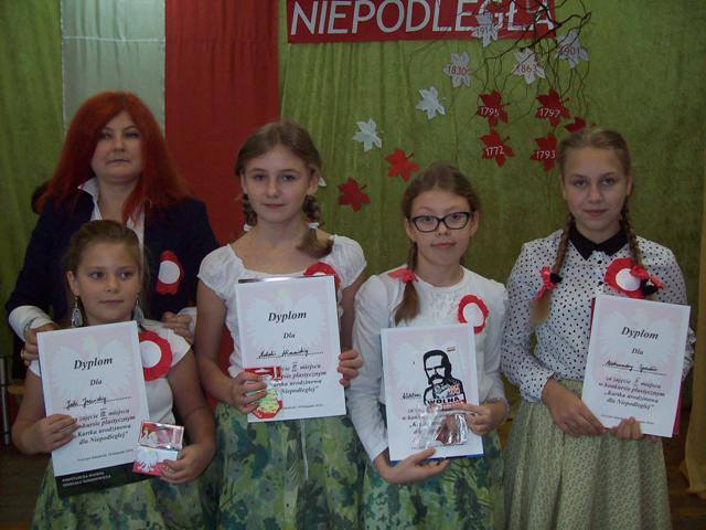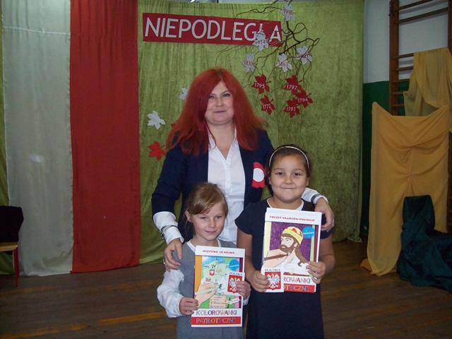 Dyrektor szkoły p. J. Bojanowska podziękowała wszystkim zaangażowanym w przygotowanie uroczystości z okazji Święta Niepodległości, wręczyła nagrody zwycięzcom i złożyła życzenia z okazji Narodowego Święta Niepodległości.