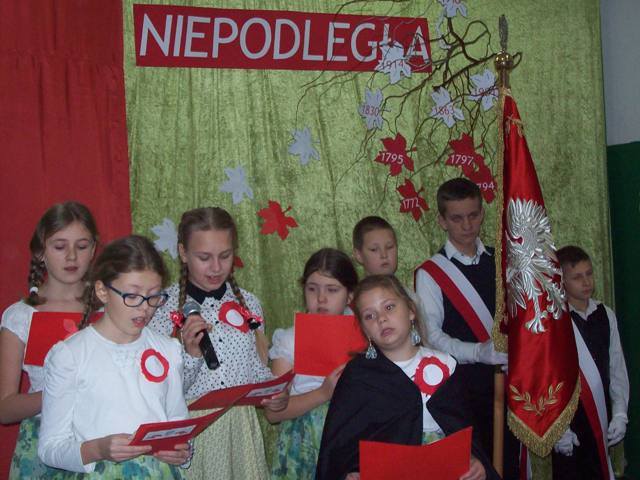 Następnego dnia poczet sztandarowy szkoły, delegacja nauczycieli i rodziców uczestniczyła w gminnych obchodach Święta Niepodległości m.in. w mszy świętej i apelu poległych w Bielsku.
