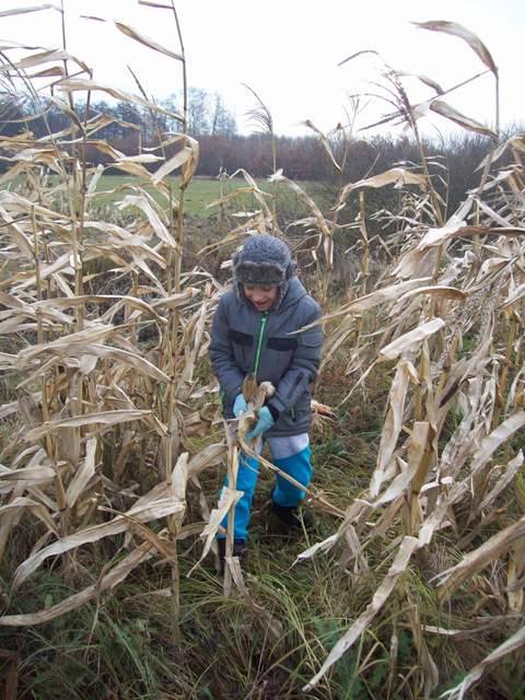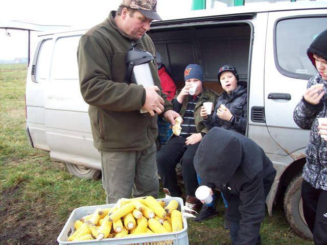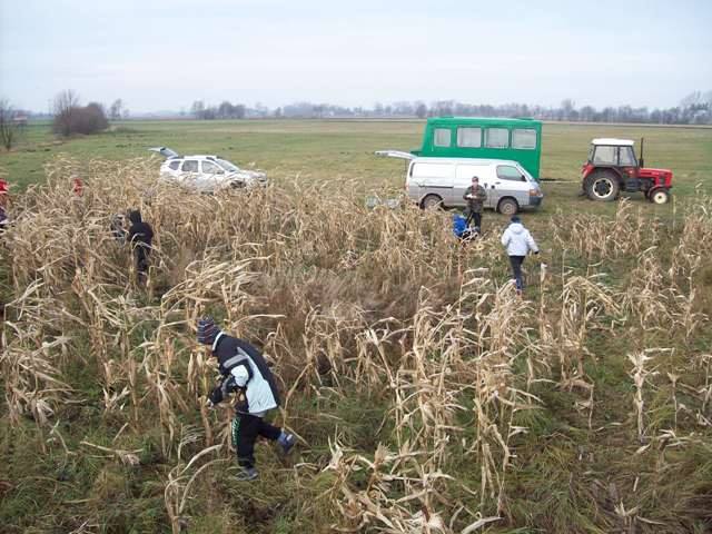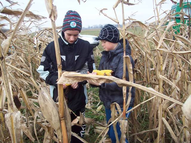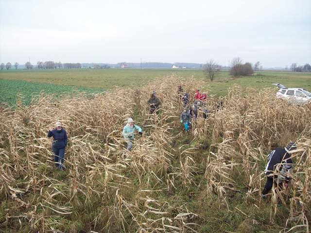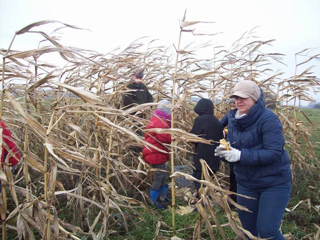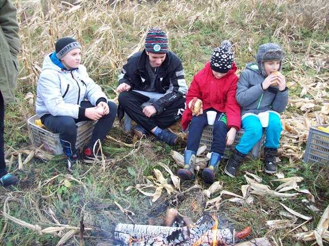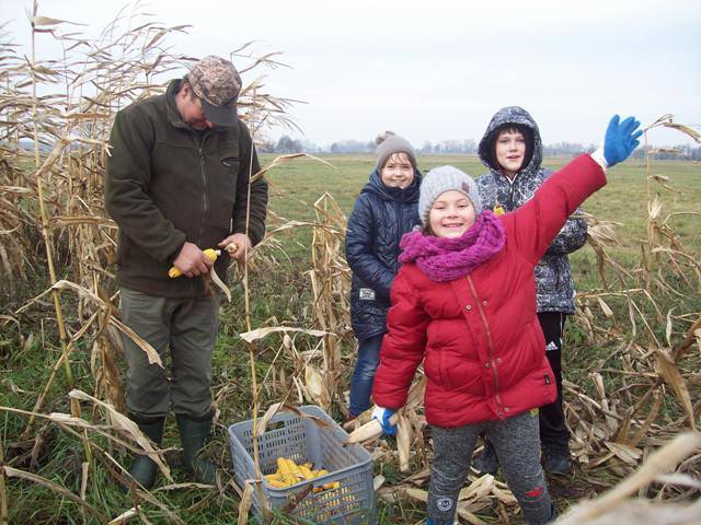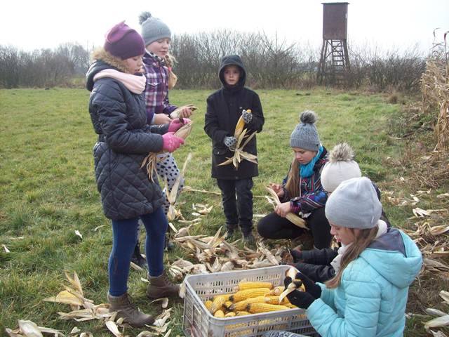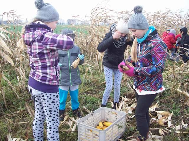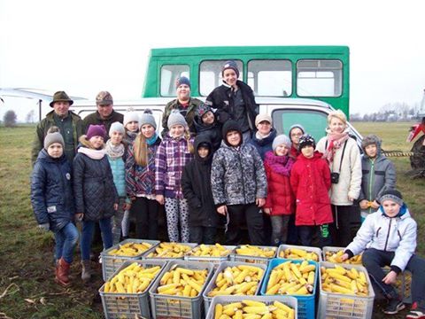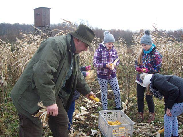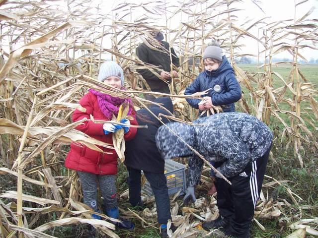 Uczniowie kl. IV-VI wspólnie z członkami Koła Łowieckiego "Kniaź" zbierali kukurydzę na karmę dla zwierząt.