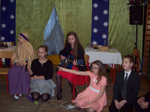 12 stycznia 2017 roku odbyło się XII Spotkanie z kolędą. Spektakl „Gdzie jest Betlejem- Misterium Wigilijne” został przygotowany pod kierunkiem p. J Żelechowskiej nauczyciela religii, z oprawą muzyczną p. R. Jarzyńskiej oraz tańcem przygotowanym pod czujnym okiem p. D. Orłowskiej. Przedstawienie składało się z dwóch aktów. W pierwszej odsłonie został pokazany zimny blask salonów, realia współczesnego świata, częsta powierzchowność ludzkich przeżyć. Występujące postacie: dyrektor Lewicki, żona dyrektora, mecenas Stefański, modelka, biznesmen, sekretarka, koleżanka żony dyrektora, nędzarz i ochroniarz będące na przyjęciu rozmawiały jedynie o sprawach doczesnych, które zagłuszały sumienie, w ich spojrzeniach, gestach i słowach królowała obłuda. W drugim akcie dominowała pokora i prostota, mimo zagubienia i słabości, ale była zauważalna betlejemska szopka. Wówczas pojawili się Maryja z Dzieciątkiem i Józef. Młodzi aktorzy przeczytali tekst o wartości Bożego Narodzenia.