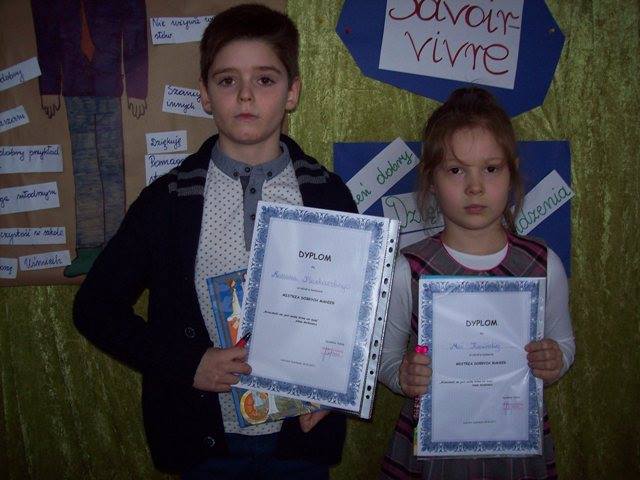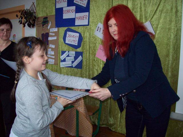 Podsumowaniem była prezentacja multimedialna na temat właściwego zachowania w szkole, w domu i na ulicy. Dyrektor szkoły p. J. Bojanowska wręczyła wygranym dyplomy „Mistrza dobrych manier” oraz nagrody. Gratulując zwycięzcom podkreśliła znaczenie kultury i stosowanie zasad dobrego wychowania w codziennym życiu.