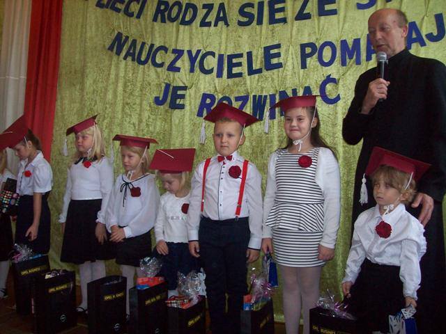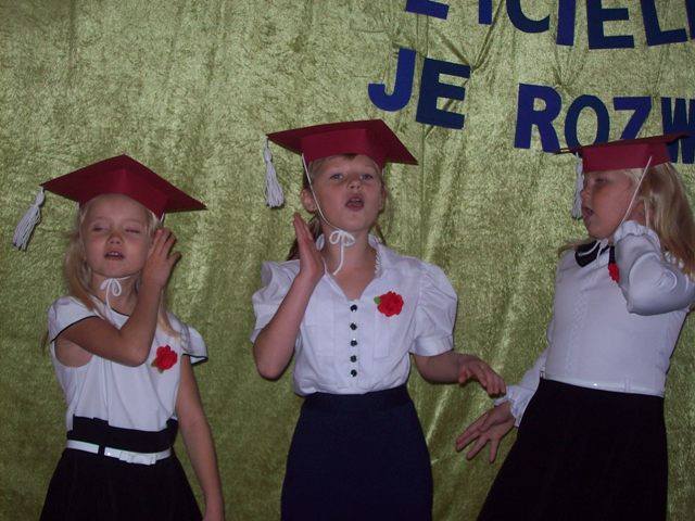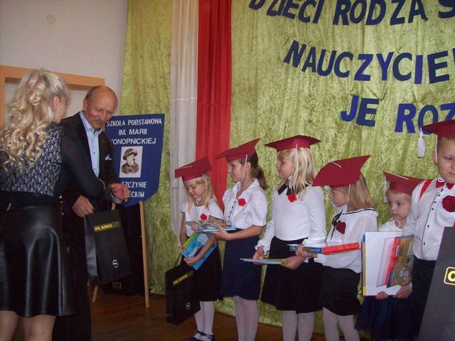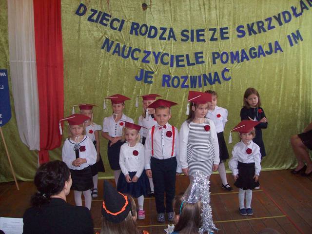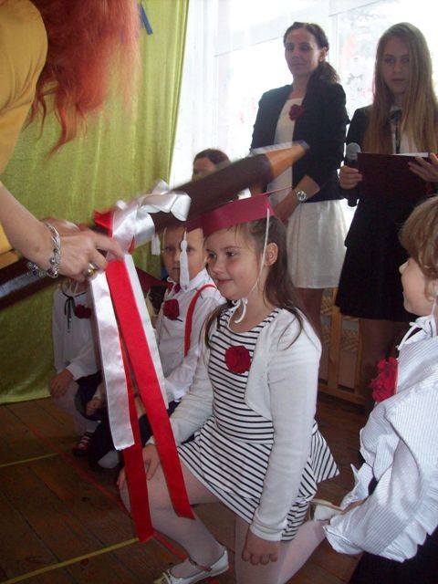 „Uczniowie rodzą się ze skrzydłami, nauczyciele pomagają im je rozwinąć”. Ta myśl towarzyszyła naszej szkolnej uroczystości z okazji pasowania pierwszoklasistów, ślubowania przedszkolaków oraz obchodów święta Komisji Edukacji Narodowej. Pierwszoklasistki i przedszkolaki wspólnie z klasą drugą zaprezentowały piosenki i wierszyki dotyczące szkolnego życia. W czasie występu odwiedziła ich dobra wróżka, przed którą zdali celująco egzamin. Niestety pojawiła się również zła wróżka, która nie została zaproszona. Przez chwilę było groźnie, na szczęście dała się przeprosić i nie zakłóciła ceremonii pasowania. W dalszej części uroczystości uczennice pierwszej klasy zostały przyjęte w poczet uczniów naszej szkoły składając uroczystą przysięgę. Przedszkolaki złożyły ślubowanie. Dyrektor szkoły p. J. Bojanowska dokonała aktu pasowania i życzyła wielu niezapomnianych przygód w czasie szkolnych podróży w zdobywaniu wiedzy. Uczennice klasy I oraz dzieci z oddziału przedszkolnego na pamiątkę otrzymały dyplomy i upominki ufundowane przez Wójta Gminy Bielsk p. J.J. Rozkosza, Przewodniczącego Rady Gminy w Bielsku p. W.J. Linowskiego Radę Rodziców, radnego p. J. Grzelaka i uczniów kl. III.