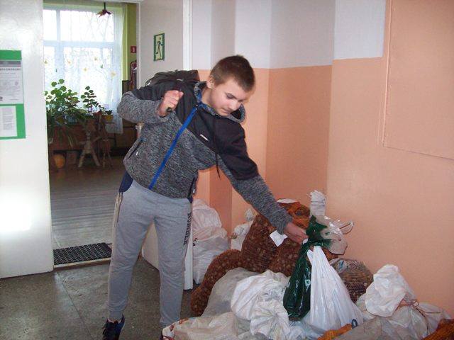 W kategorii klas IV-VII najwięcej zebrała klasa IV - 41 kg, IImiejsce klasa VI - 29 kg i III miejsce klasa V - 5 kg.