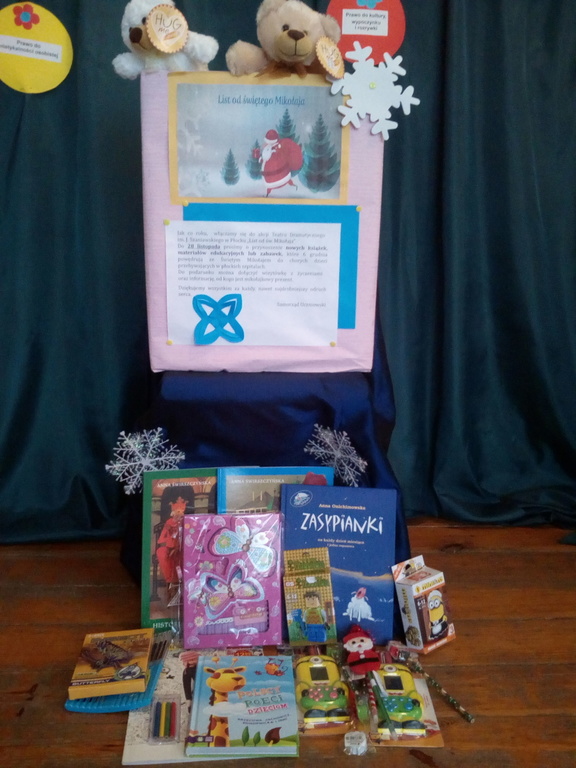 Po raz kolejny uczestniczyliśmy w akcji "List od św. Mikołaja" organizowanej przez Teatr Dramatyczny im. J. Szaniawskiego w Płocku. Zebrane przez nas nowe zabawki, książki, materiały edukacyjne 6 grudnia powędrują ze Świętym Mikołajem do chorych dzieci przebywających w płockich szpitalach.