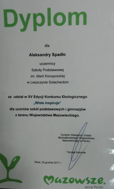• KONKURS EKOLOGICZNY "WISŁA INSPIRUJE" - 20.12.2017r.