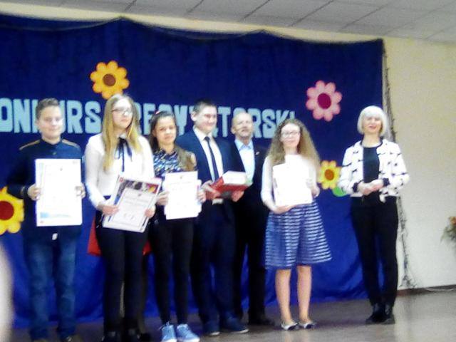 W gminnym konkursie recytatorskim "Brzechwa dzieciom" w kategorii klas V-VII Wiktoria Drążewska (kl. VI) zajęła I miejsce. W kategorii klas I-II Nadia Różycka zajęła II miejsce. Wyróżnienie zdobyła Patrycja Jankowska w kategorii klas III. Gratulujemy!