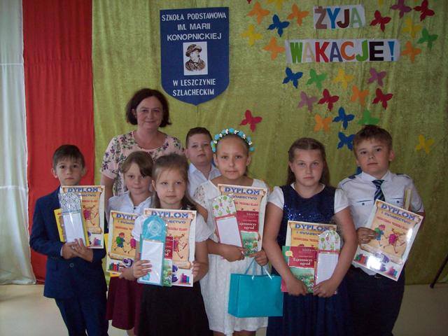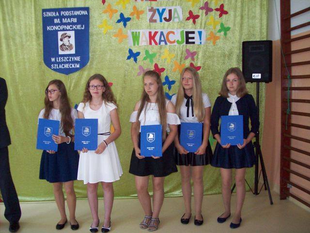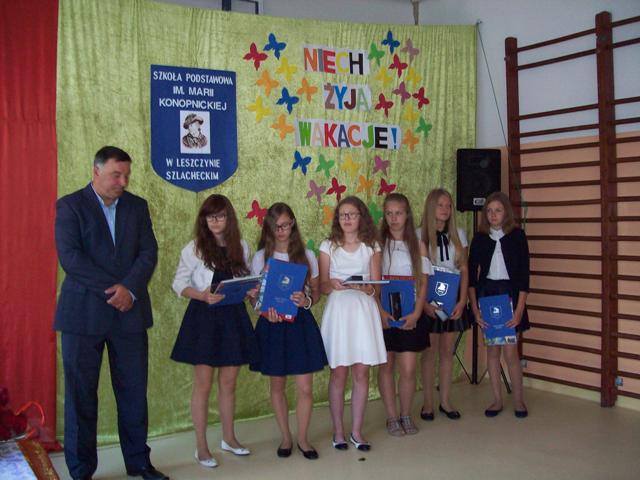 Za dobre i bardzo dobre wyniki w nauczaniu i wzorowe i bardzo dobre zachowanie wyróżnieni zostali: Maja Pietrzak kl. I, Nadia Różycka kl.II, Ewa Ruskowalska, Zosia Żurawska, Maciej Potera z kl. III, Julia Szczepańska z kl.IV, Oliwka Kasińska z kl. V, Oliwia Trzcińska, Aleksandra Spadło, Patrycja Barucha, Natalka Winnicka, Julia Jankowska, Wiktoria Drążewska z kl.VI.