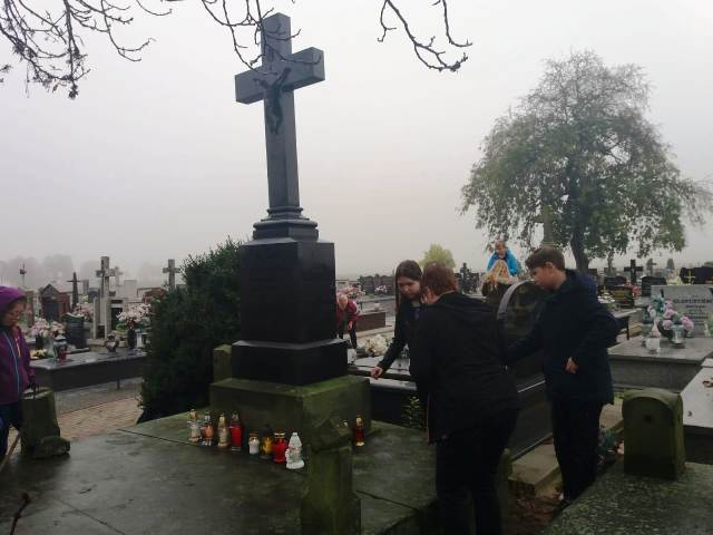 Społeczność naszej szkoły 24.10.2019r. wzięła udział w „Rajdzie zaduszkowym” – Leszczyn Szlachecki – cmentarz parafialny w Zagrobie. W tym roku rajd zbiegł się z akcją MEN „#Szkoła pamięta”. Celem naszych działań było: uporządkowanie i odwiedzenie grobów osób zasłużonych i cenionych w danej społeczności; odwiedzenie lokalnych miejsc pamięci i zgłębienie ich historii; zapalenie zniczy w miejscach związanych z ważnymi wydarzeniami historii lokalnej; posprzątanie bezimiennych i opuszczonych grobów, zorganizowanie zbiórki zniczy i kwiatów by udekorować te groby; odwiedzenie grobów zmarłych nauczycieli oraz uwrażliwienie młodych ludzi na potrzebę pielęgnowania pamięci o bohaterach naszej wolności. Młodsze dzieci włączyły się w akcję biorąc udział w zbiórce zniczy. Uczniowie klas IV-VIII zostali podzieleni na dwa zespoły: kl. IV-V porządkowały teren wokół pomnika ofiar II wojny światowej natomiast kl. VI-VIII zajęły się porządkowaniem najstarszych nagrobków rodu Machcińskich, Orzeszkowskich. Zapalili znicze na grobach nauczycieli i wychowanków naszej szkoły jak również u swoich bliskich spoczywających na zagrobskim cmentarzu.