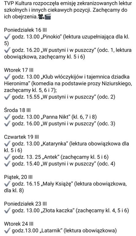 TVP Kultura rozpoczęła emisję zekranizowanych lektur szkolnych i innych ciekawych pozycji. Zachęcamy do ich obejrzenia!