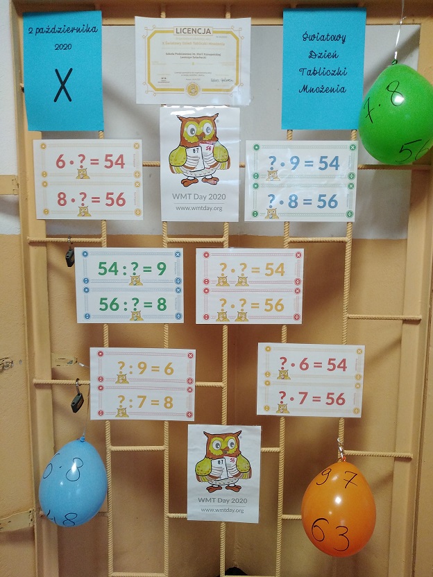Już po raz dziesiąty wzięliśmy udział w Światowym Dniu Tabliczki Mnożenia. Głównym organizatorem akcji jest Wydawnictwo Edukacyjne WKM „Rachmistrz” Andrzej Grabowski ze Szczecinka. Uczniowie utrwalali tabliczkę mnożenia wykorzystując m.in. "Karty Grabowskiego", portal matzoo.pl, tabliczkamnożenia.pl, rozwiązywali łamigłowki matematyczne, sklejali "matematyczną" sówkę. Każdy mógł wziąć udział w egzaminie z tabliczki mnożenia. Ten kto poradził sobie z zadaniami dostawał znaczek "MT EXPERT", co oznaczało, że jest mistrzem tabliczki mnożenia.