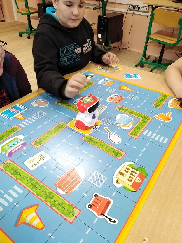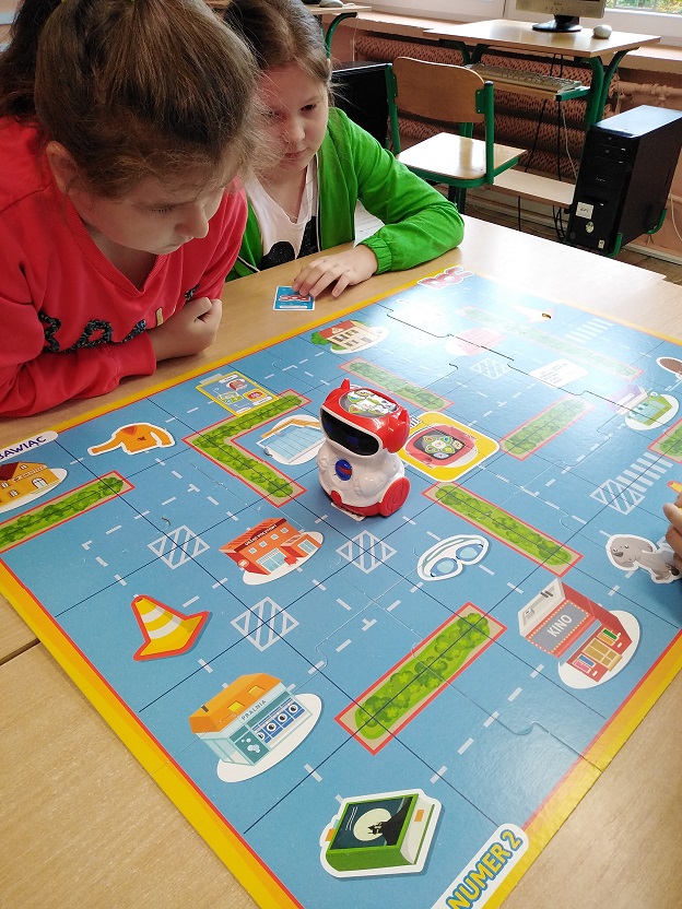 Uczniowie kl. I na zajęciach edukacji informatycznej zaprzyjaźnili się z robotem DOC. Wykonywali konkretne polecenia robota, odpowiednio go programując. Natomiast uczniowie kl. IV-V programowali robota DOC według poleceń na kartach, gdzie znajdowały się konkretne problemy do rozwiązania.