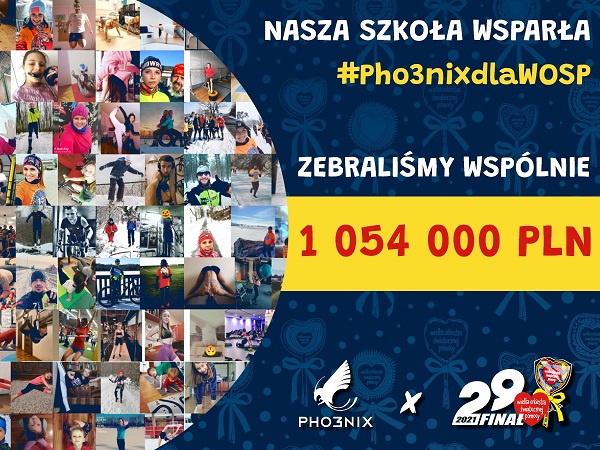 Uczniowie naszej szkoły od 29 stycznia do 7 lutego na platformie www.pho3nix-kids.com oglądając filmy, ćwiczyli i zbierali punkty na WOŚP. Każde 10 punktów na platformie z filmami z ćwiczeniami to na 1 zł. Pieniądze trafiły na konto WOŚP.