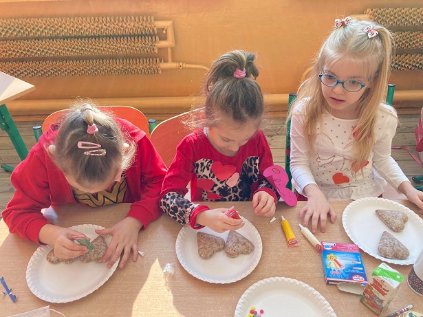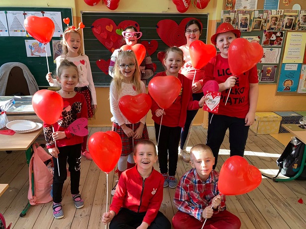 12 lutego w klasach młodszych odbyły się szkolne walentynki. Rozpoczęliśmy je zabawą integracyjną "Ludzie do ludzi". Potem uczniowie mieli do wykonania kilka zadań. Były to matematyczne serca, kojarzenie bajkowych par. Dzieci rozwiązywały walentynkową krzyżówkę, dowiedziały się co znaczy "zostać ugodzonym strzałą Amora”. Dużą radość sprawiła konkurencja "Laurkowe serca", gdzie każdy na przyczepionej na plecach laurce mógł pisać życzenia dla danej osoby. Na koniec walentynkowy listonosz rozdał karty, z przygotowanej wcześniej poczty walentynkowej. Zwieńczeniem zajęć było dekorowanie piernikowych serc.