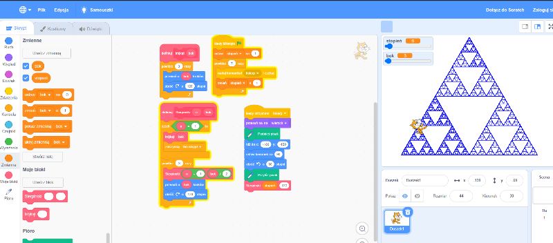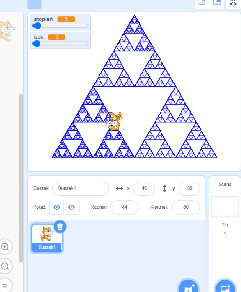 Na zajęciach matematyki i informatyki uczniowie klas starszych zajmowali się również fraktalami i ich zastosowaniami w życiu codziennym, tworzyli fraktale (m.in. trójkąt Sierpińskiego, płatek Kocha) wykorzystując program Scratch. Młodsi uczniowie wykonali parce plastyczne próbując wyobrazić sobie świat wielokątów.