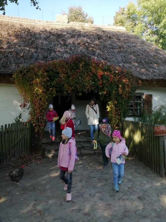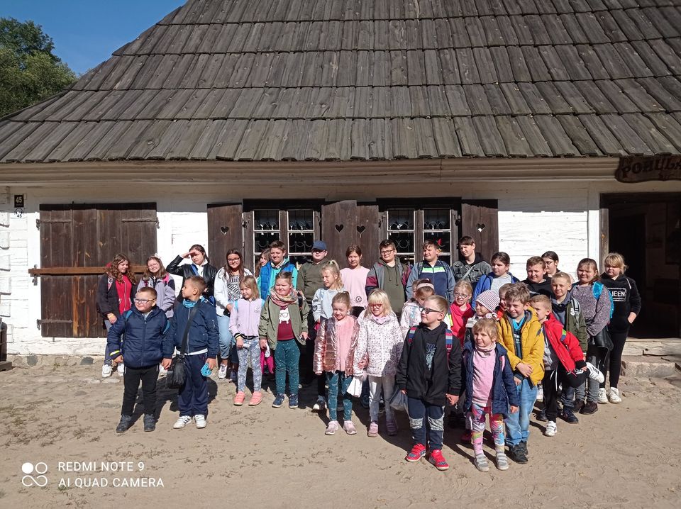 W dniu 29 września uczniowie klas 0-8 wybrali się na wycieczkę do Skansenu w Sierpcu. W promieniach jesiennego słońca zwiedzili wiejskie chaty oraz inne zabudowania charakterystyczne dla regionu. Trasa zwiedzania choć długa, zawierała niezwykle interesujące ekspozycje oraz przebiegała w pięknych okolicznościach przyrody. Atutem była możliwość obserwacji zwierząt gospodarskich np. królików, indyków czy też kóz. Wszyscy byli żywo zainteresowani historiami przekazywanymi przez przewodników. Dodatkową atrakcją były przejażdżki wozem z konnym zaprzęgiem. Dzieci wróciły do szkoły w dobrych humorach i z apetytem na kolejne wyjazdy.