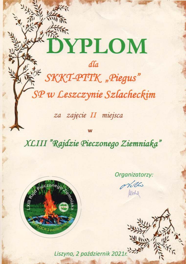 2.10.2021r. „Piegusy” wzięły udział w XLIII „Rajdzie Pieczonego Ziemniaka”. Trasa prowadziła z Podolszyc Południe przez Borowiczki do Liszyna. Podczas marszu towarzyszyło na słoneczko i dobre humory, natomiast na mecie każdy uczestnik otrzymał smacznego pieczonego ziemniaka. "PIEGUSY" zajęły II miejsce.
