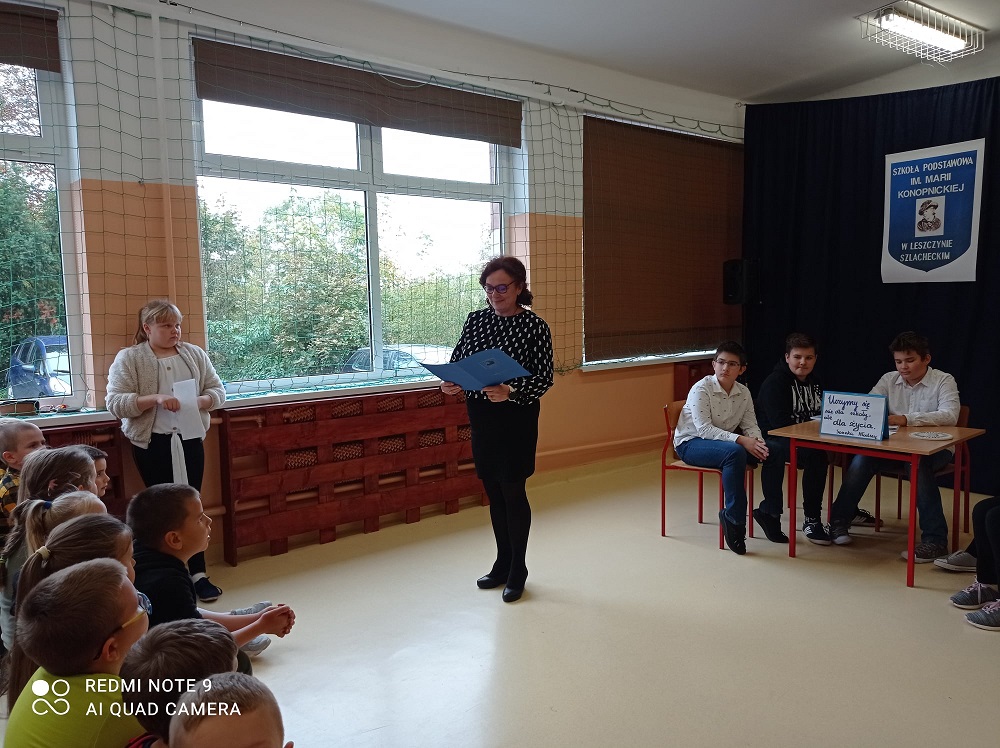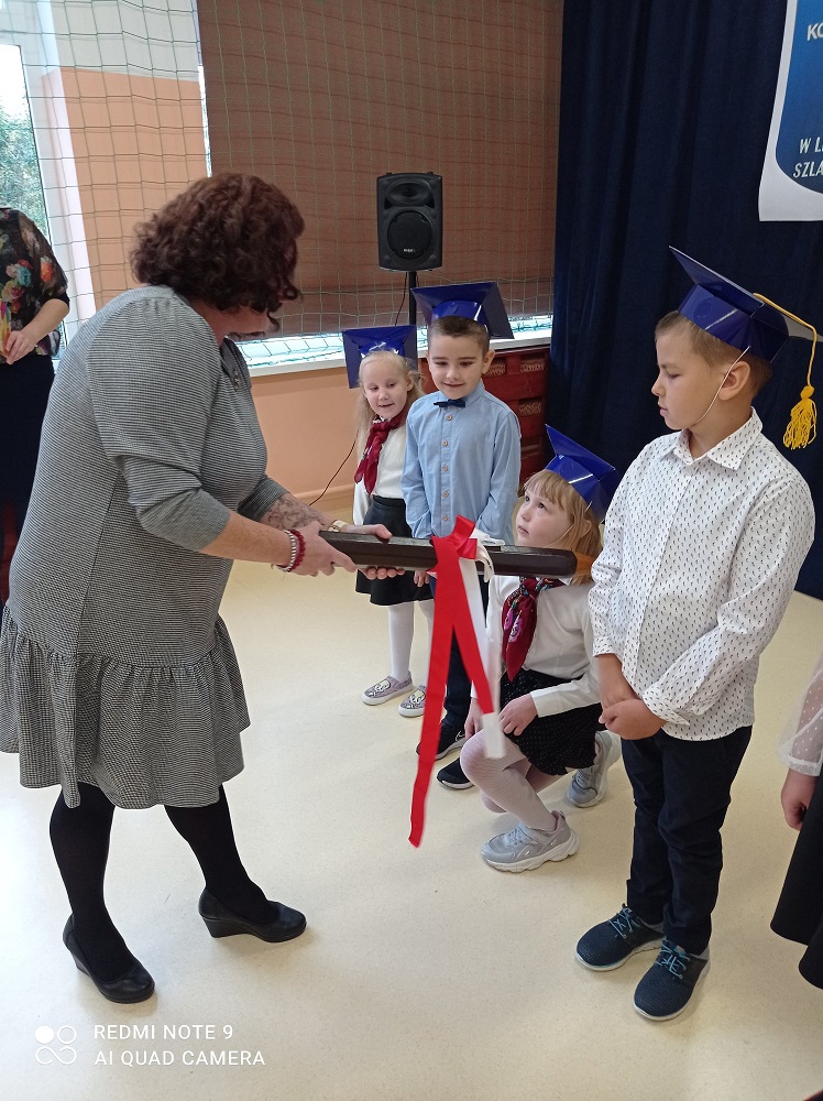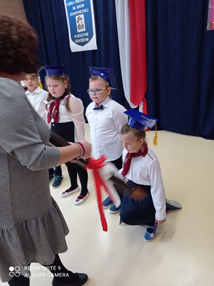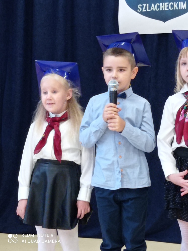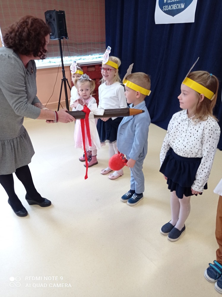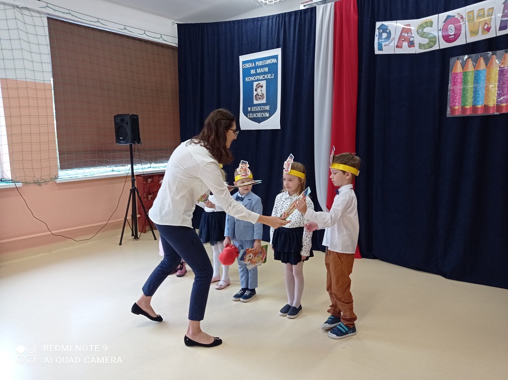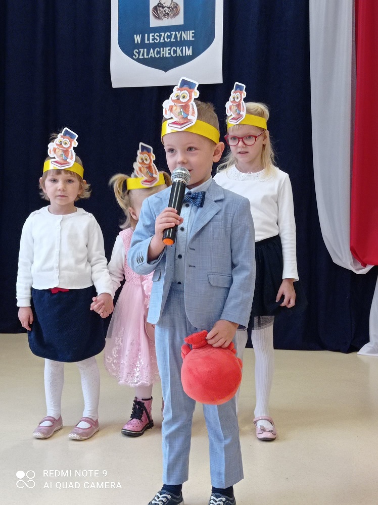 W Dniu Edukacji Narodowej w naszej szkole odbyło się ślubowanie uczniów klasy pierwszej - "Uczniem być to ważna sprawa i otwierać wiedzy drzwi...". Swoim znakomitym występem udowodnili, że zasługują na zaszczytne miano ucznia Szkoły Podstawowej im. M. Konopnickiej w Leszczynie Szlacheckim i możliwość posługiwania się pierwszym oficjalnym dokumentem – legitymacja szkolną. Kolejnym bardzo ważnym wydarzeniem tego dnia było pasowanie przedszkolaczków. Nasi debiutanci oprócz braw zostali obdarowani licznymi upominkami ufundowanymi przez: Wójta Gminy Bielsk Pana J.J. Rozkosza, Radę Rodziców i Panią Dyrektor. R. Jarzyńską.