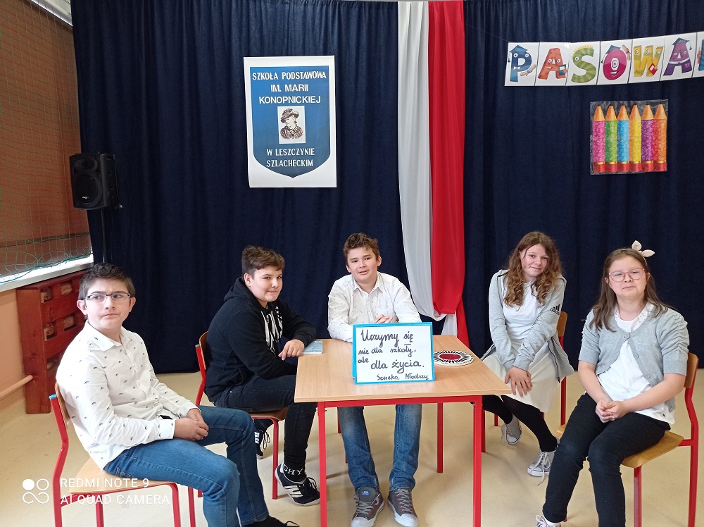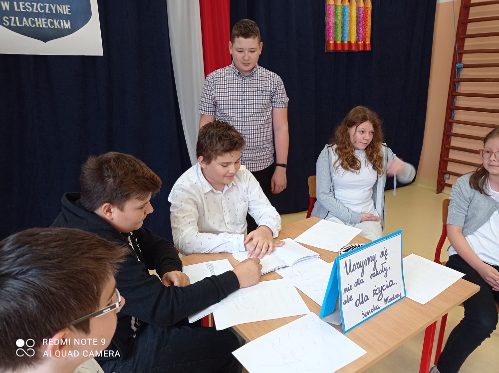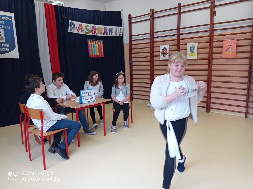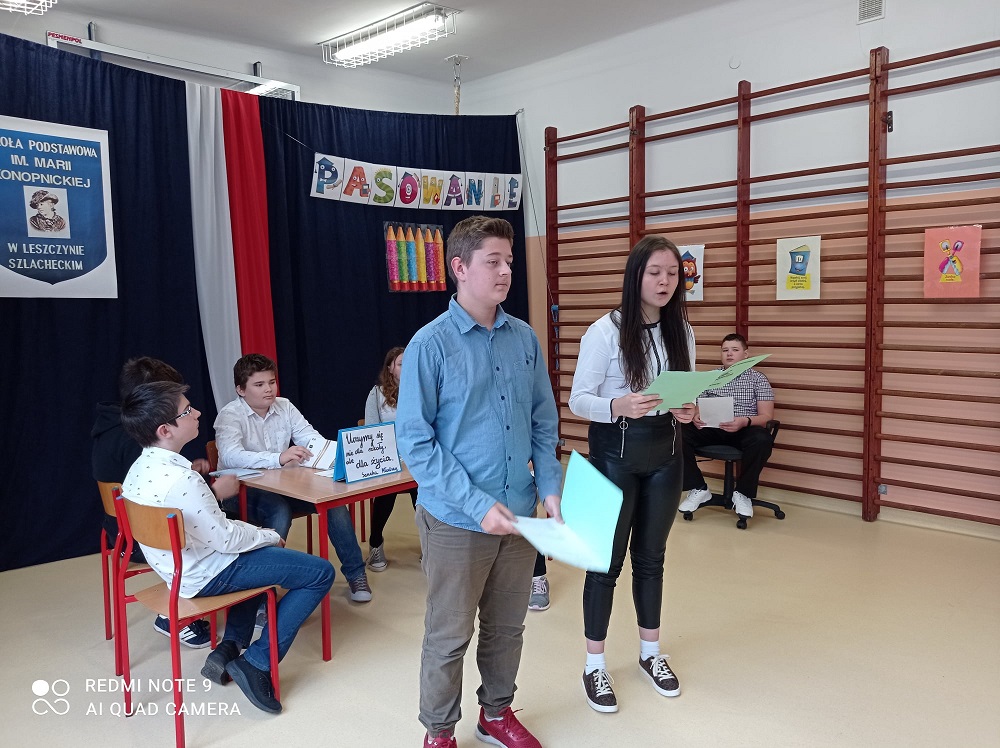 W drugiej części uroczystości uczniowie z klasy 7-8 wcielili się w rolę nauczycieli i uczniów i udowodnili, że „Uczymy się nie dla szkoły, ale dla życia.” Samorząd Uczniowski przygotował dla nauczycieli słodki upominek.