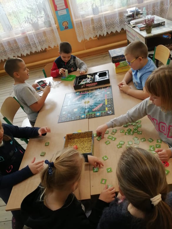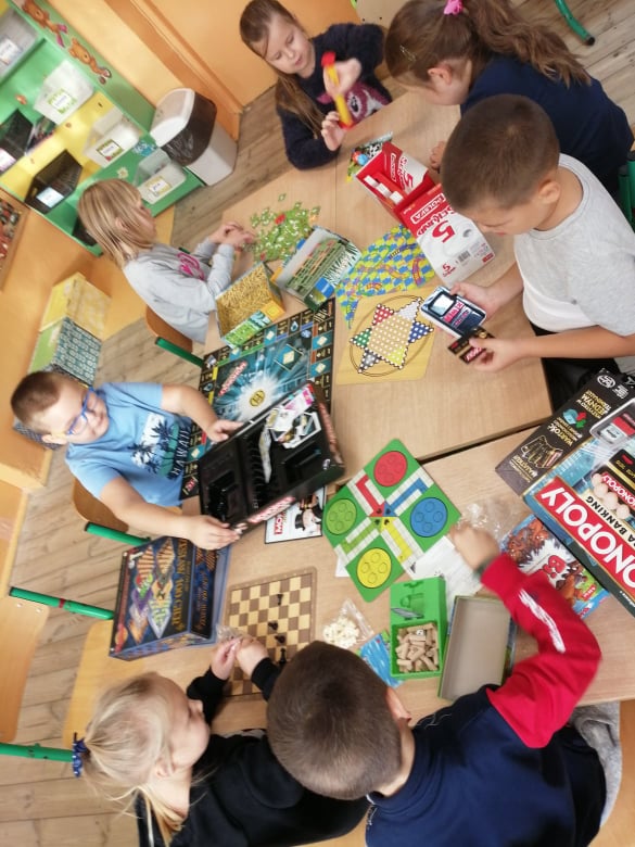 Ten dzień w naszej szkole był Dniem Gier Planszowych. Planszówki pojawiły sie na zajęciach oraz przerwach. Każdy mógł zaprezentować swoją grę i zagrać w nią z kolegami. To był przyjemny, radosny dzień. Gry planszowe są dobrym sposobem na spędzanie wolnego czasu w sposób kreatywny, to również okazja do tworzenia dobrych relacji.