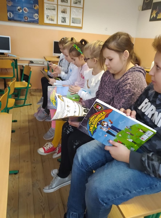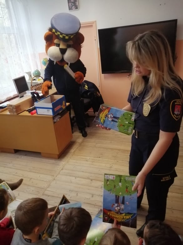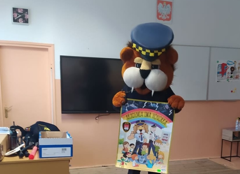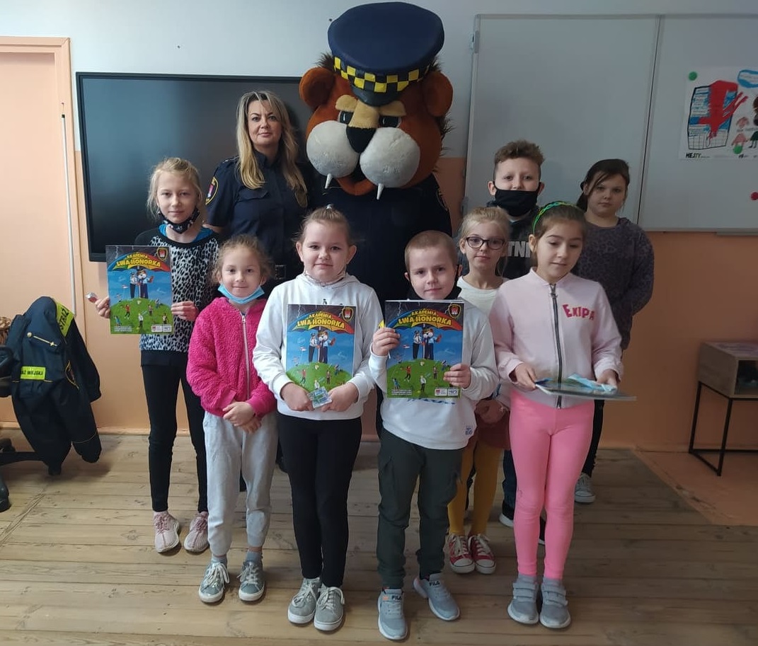 W piątek naszą szkołę odwiedził Lew Honorek i funkcjonariusze płockiej Straży Miejskiej. Podczas spotkania nasz gość zapoznał nas z zasadami bezpieczeństwa nie tylko na drodze ale i w innych miejscach. Każdy uczestnik spotkania otrzymał książeczkę "Akademia Lwa Honorka".