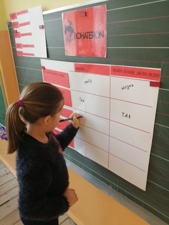 Próbowały wczuć się w przeżycia bohaterów żyjących w tak trudnym czasie – II wojny światowej, Powstania Warszawskiego. Na zakończenie zdefiniowały słowo bohater.