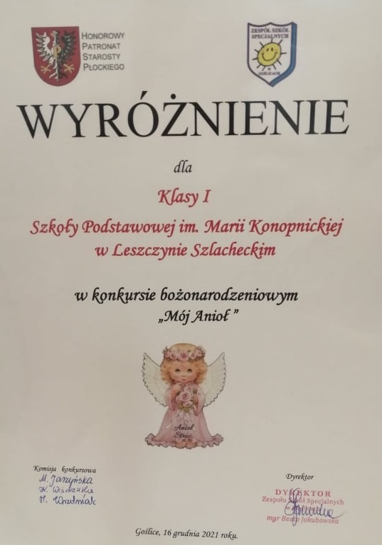 Klasa I zdobyła wyróżnienie w konkursie bożonarodzeniowym „Mój Anioł” zorganizowanym przez Zespól Szkół Specjalnych w Goślicach. Gratulujemy!
