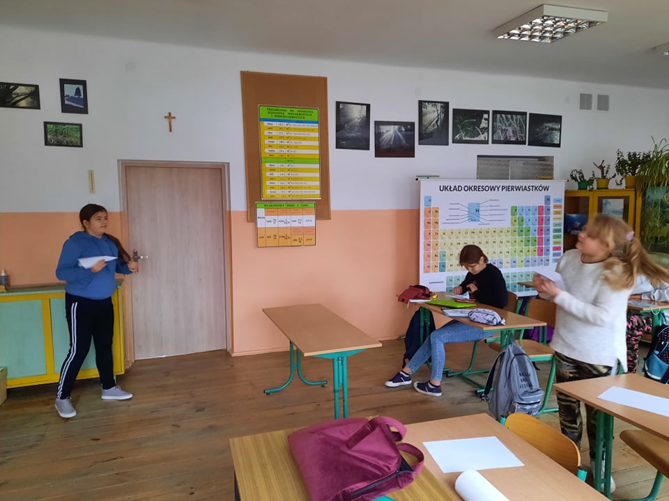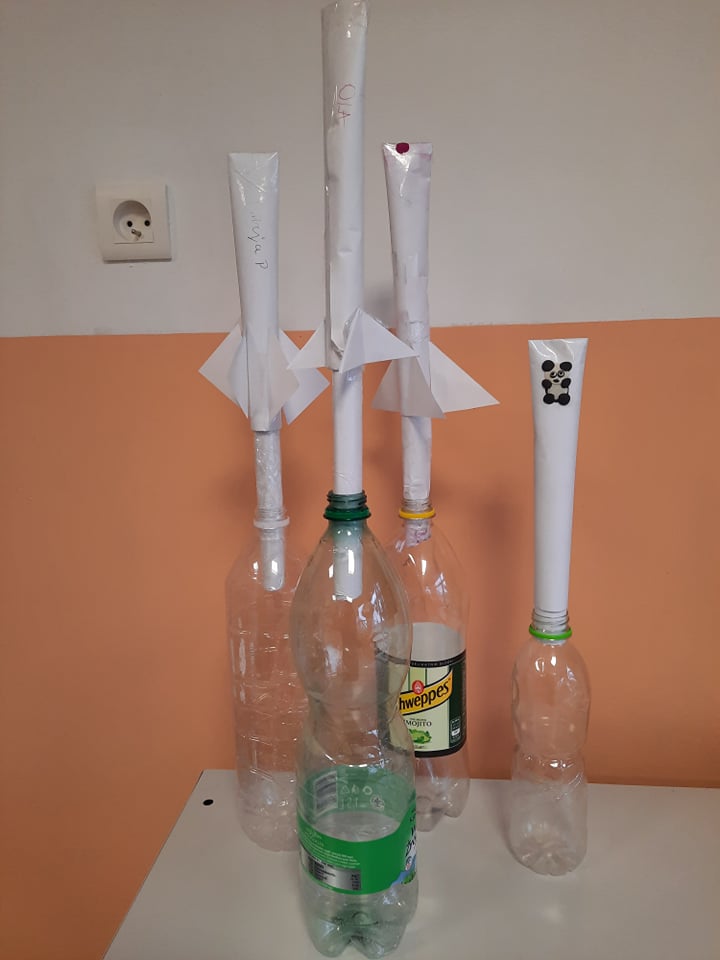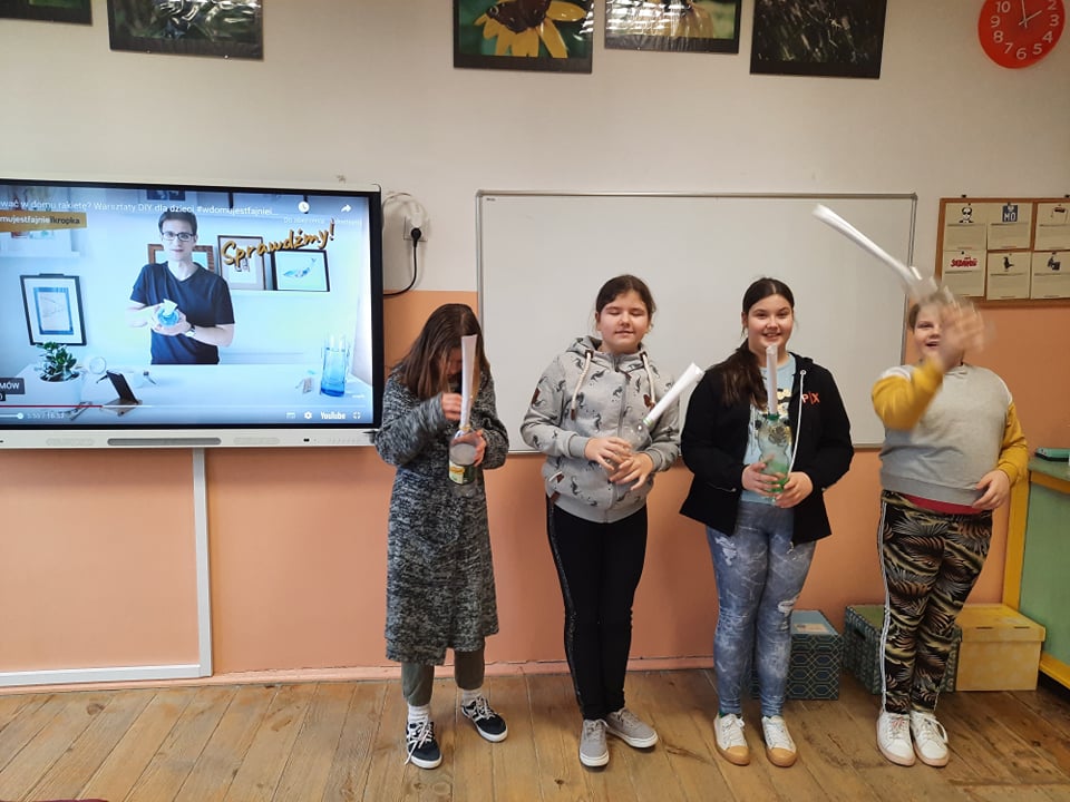 Zdobytą wiedzę sprawdzały w interaktywnej grze typu puzzle. Zbudowały własne rakiety i wystrzeliły je z leszczyńskiego kosmodromu tj. szkolnej sali gimnastycznej.