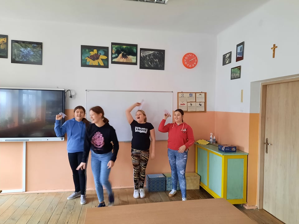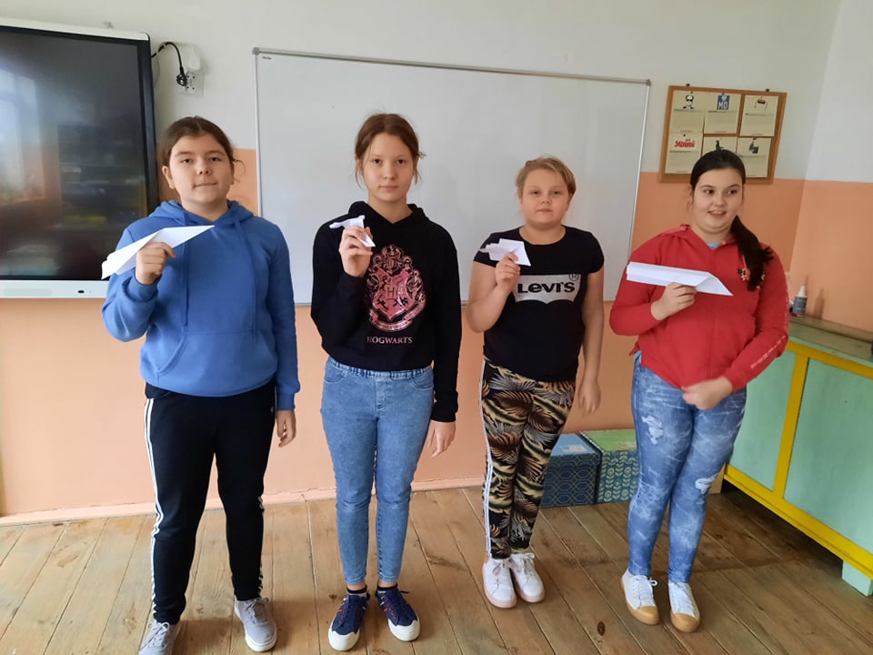 Uczennice przygotowały z papieru samoloty według własnego projektu. Następnie sprawdzały jak daleko polecą papierowe maszyny.