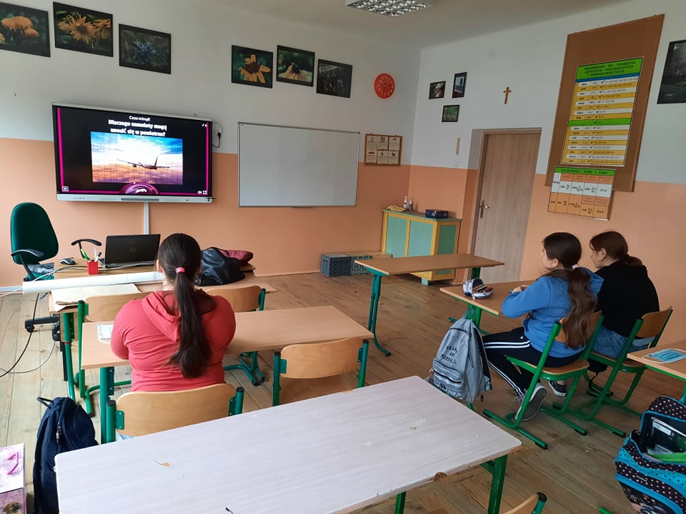 Obejrzały prezentację o sposobie lotu samolotów, helikopterów oraz rakiet. Zastanawiały się, czy praca kosmonauty jest łatwa. Dowiedziały się, że kosmonauta musi być odporny na stres, cieszyć się dobrym zdrowiem, mieć mocne kości, nerki bez kamieni. Co więcej, nie powinien chrapać, nie wydzielać nieprzyjemnego potu i nie mieć nieświeżego oddechu. To musi być osoba posłuszna przełożonym, ale również samodzielna i pomysłowa.