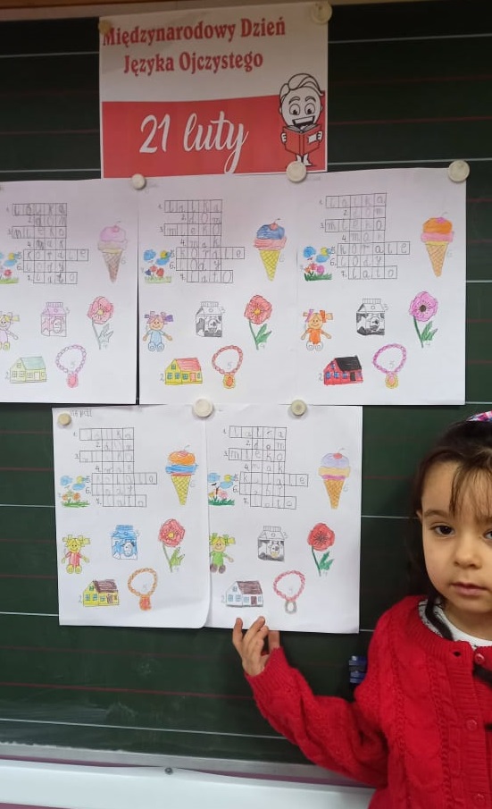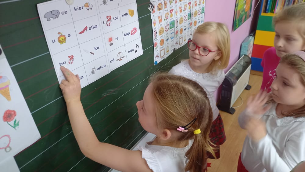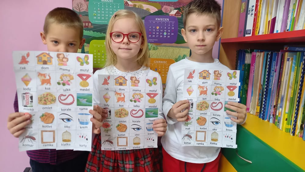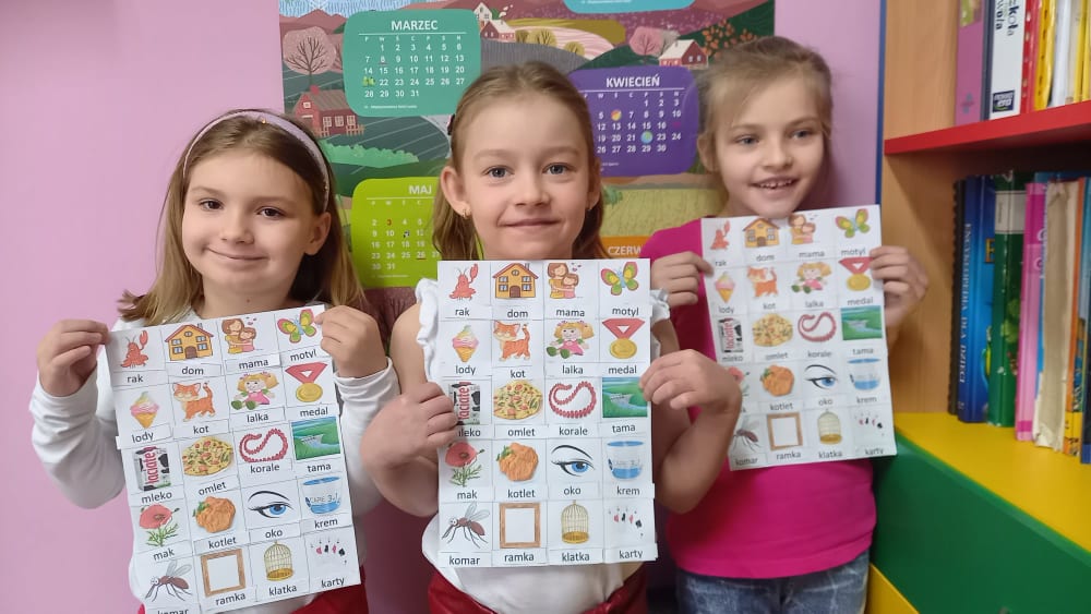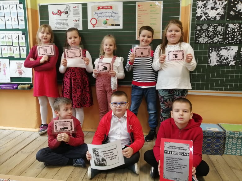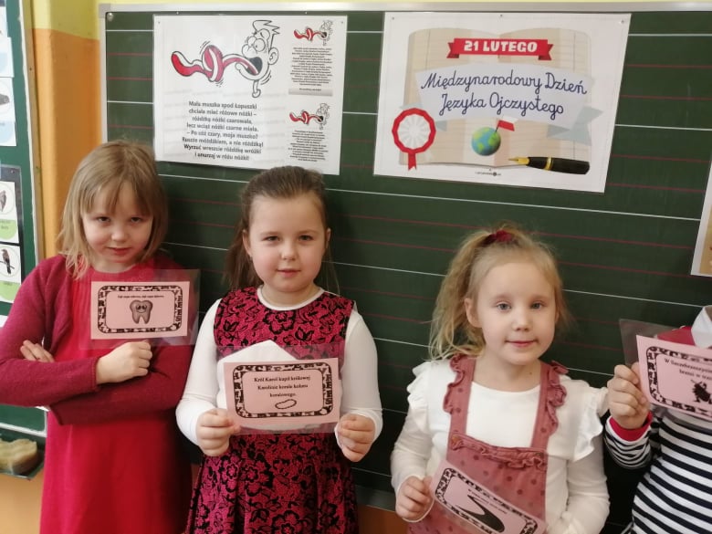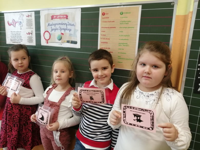 Uczniowie klasy I zmierzyli się z szeregiem zadań związanych z polszczyzną. Uczniom najbardziej spodobały się łamańce językowe oraz moc znaków interpunkcyjnych, które różnie użyte zmieniają sens przekazu. Korzystając z okazji poćwiczyli swoje umiejętności kaligraficzne i przygotowali kartki z "miłymi słowami" dla kolegów i koleżanek z klas II-III.