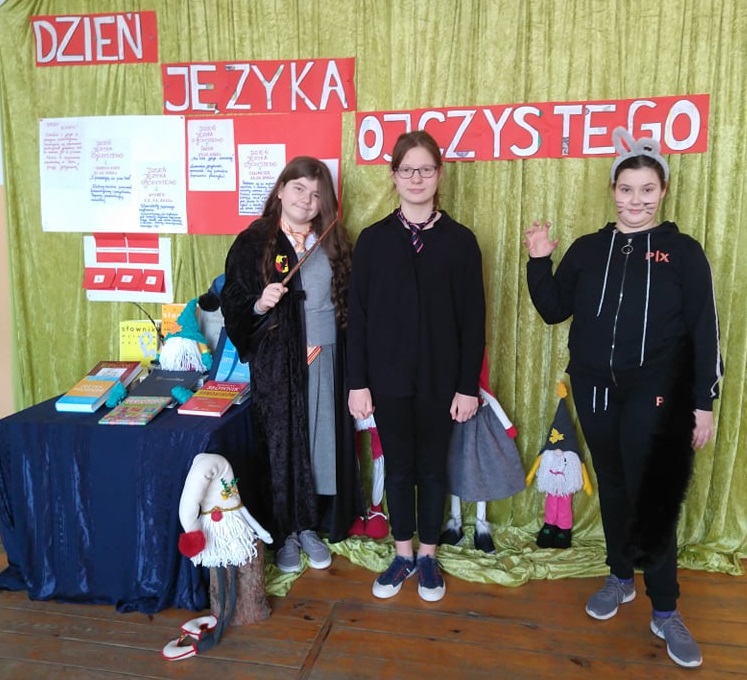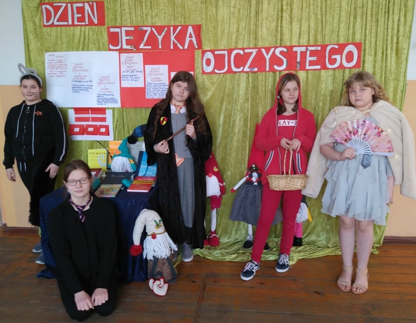 Uczniowie z klas IV-VIII zapoczątkowali obchody tego ważnego święta zadaniem „Z frazeologią za pan brat”. Złośliwy chochlik pomieszał przysłowia i frazeologizmy, uczniowie próbowali uporządkować wyrażenia, zwroty i zdania. Jutro odbędą się warsztaty pięknego czytania. Miejmy nadzieję, że wszyscy przekonamy się, że czytanie jest modne. Postaramy się zaprezentować wylosowany tekst na różne sposoby: z euforią, z żalem, zniechęceniem itp. W środę udowodnimy, że nie taki język straszny- gimnastykując się przy łamańcach językowych. W czwartek natomiast – mamy nadzieję, że odwiedzą nas wyjątkowi gości. Uczniowie przybędą do szkoły przebrani za wybranych bohaterów z lektur, baśni, legend, mitów, wierszy lub ich autorów bądź autorki. Dodatkowo postać może być wzbogacona krótkim tekstem: wybranym cytatem, bądź wymyśloną kwestią reklamującą tę postać.