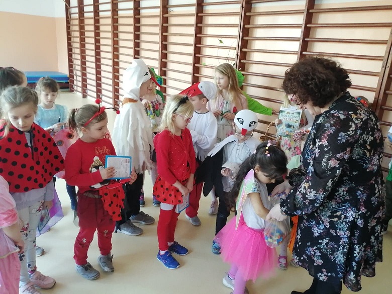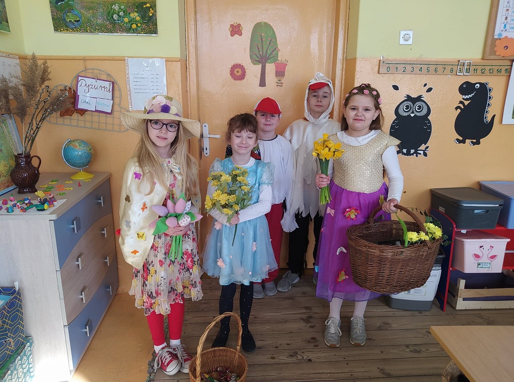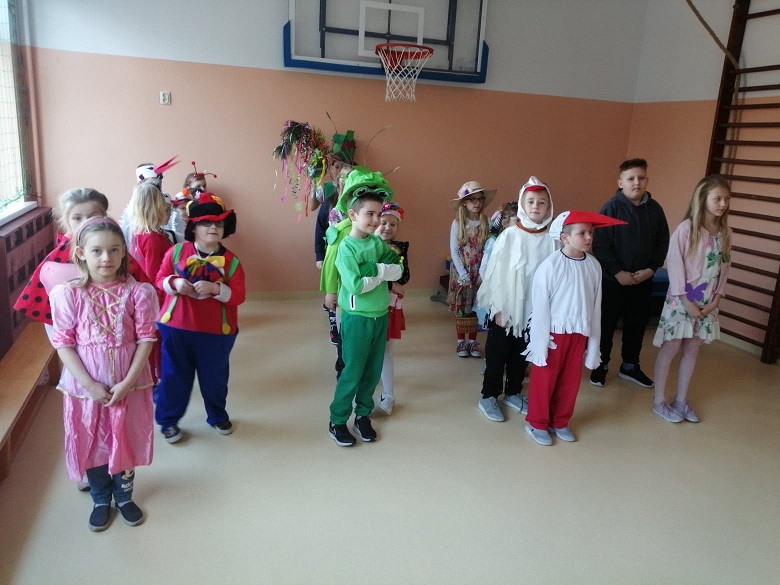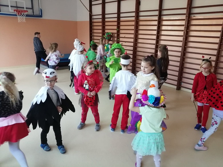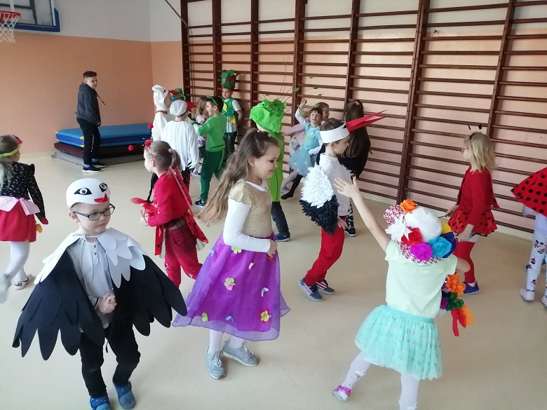 Klasy starsze wiosnę powitały na sportowo. Natomiast w klasach 0-3 odbył się konkurs na "Najzabawniejsze wiosenne przebranie". W szkole zagościły bociany, Wiosenki, a nawet drzewa. Wiosna została powitana gaikiem- słowiańskim zwyczajem ozdabiania iglastych gałęzi wstążkami, dzowneczkami i świecidełkami.