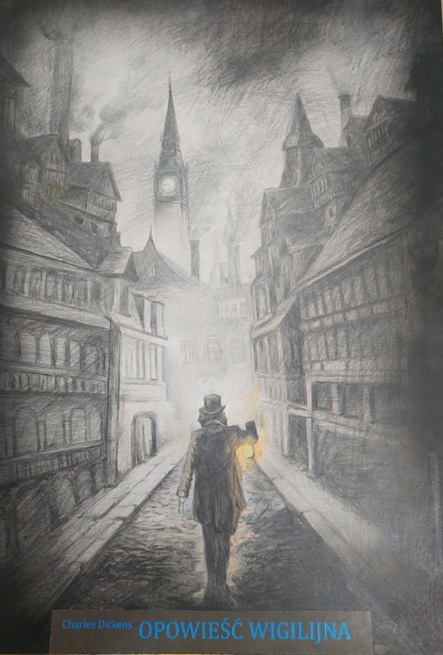 Nasza ósmoklasistka wybrała utwór Charlesa Dickensa pt. „Opowieść wigilijna” i wykonała plakat przedstawiający głównego bohatera - Ebenezera Scrooge'a. Udowodniła twórcze odczytanie utworu oraz uargumentowała swój wybór w krótkiej prezentacji.