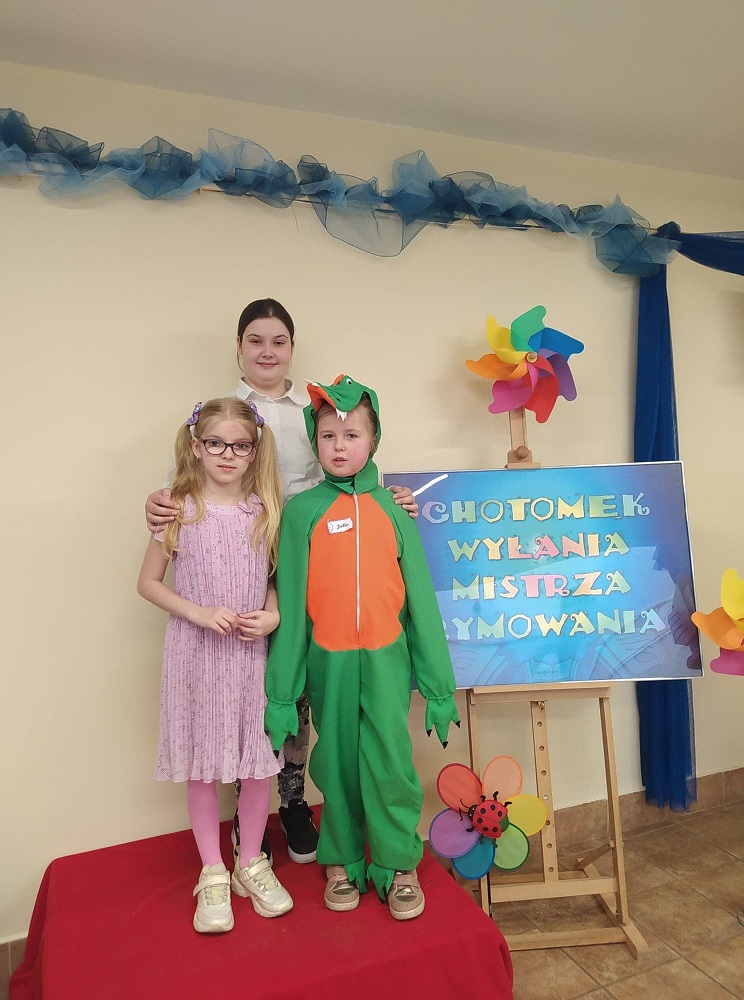25 kwietnia nasze uczennice- Julia Kondracka, Lena Lewandowska i Aleksandra Szczepańska wzięły udział w powiatowym konkursie "Chotomek wyłania mistrza rymowania". Dziewczynki zaprezentowały się