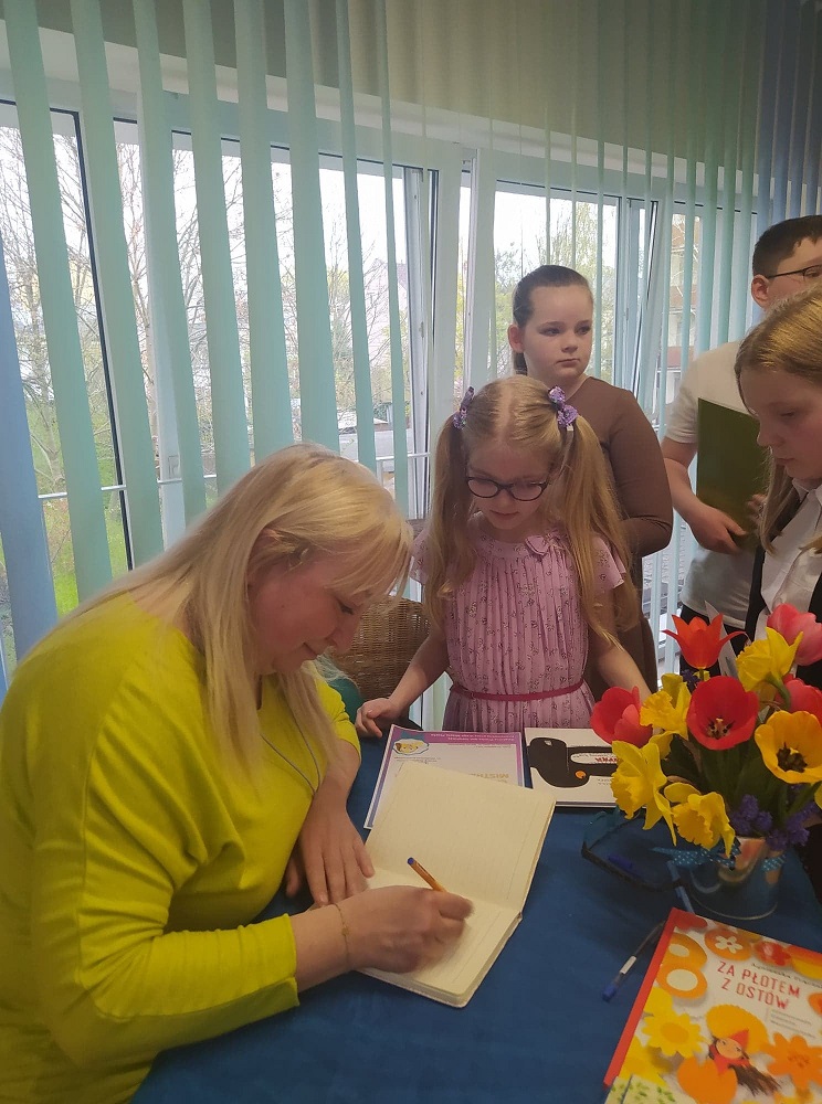 wspaniale. Nie tylko recytowały wiersze J. Tuwima i A. Frączak, ale również zaprezentowały własne utwory. Było to dla nich nieco stresujące, ale atrakcyjne wydarzenie. Ukoronowaniem konkursu było spotkanie autorskie z p. Agnieszką Frączak, autorką wierszy dla dzieci. Nasze uczennice zdobyły jej autografy oraz zrobiły sobie pamiątkowe zdjęcie z pisarką.