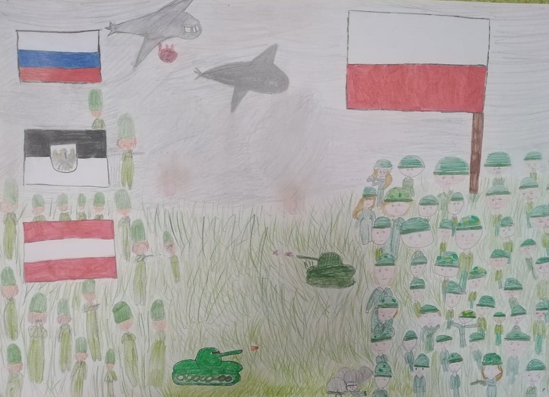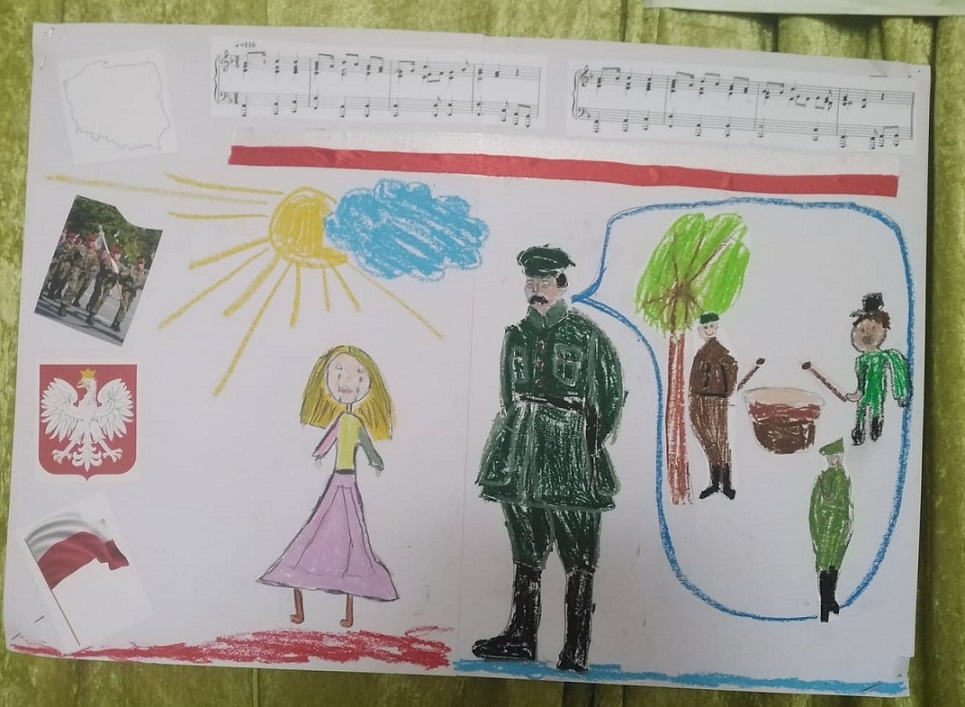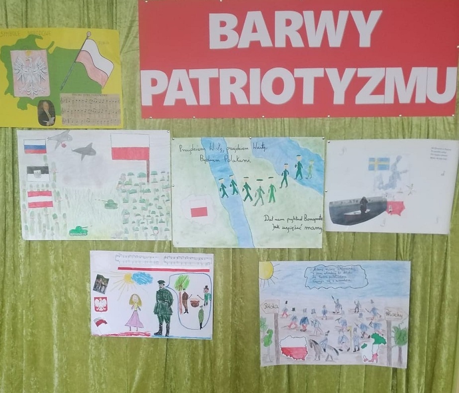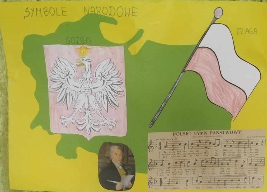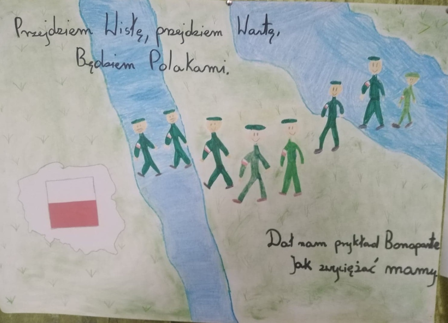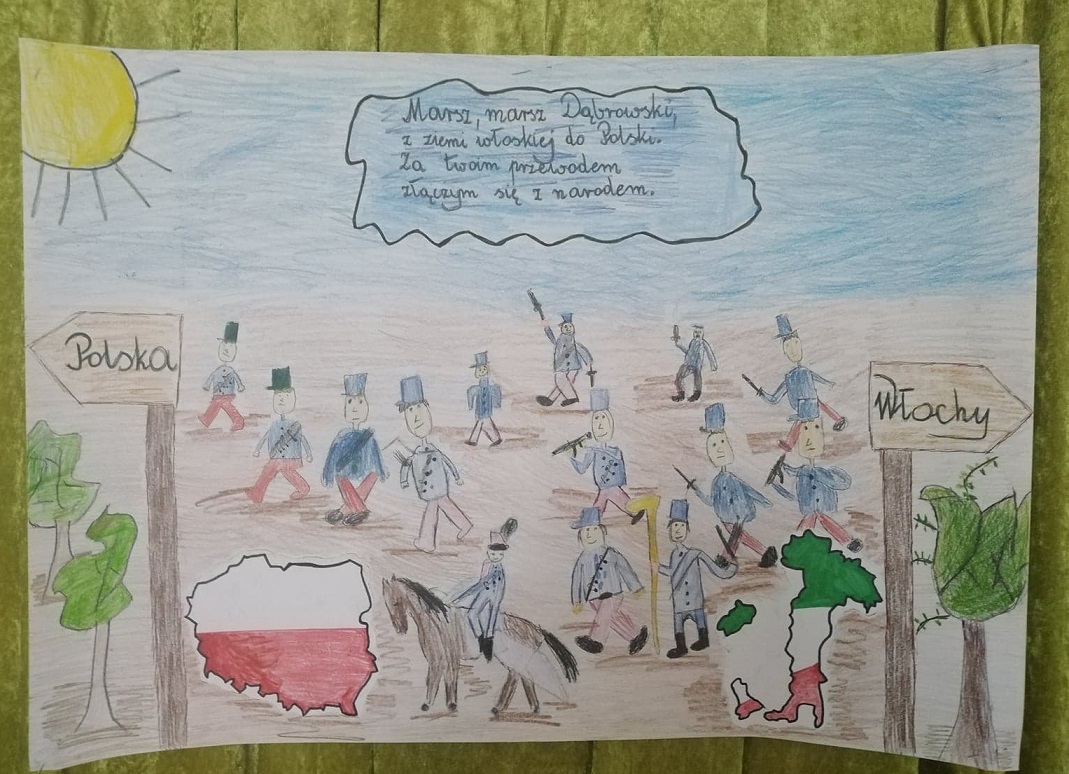 Uczniowie naszej szkoły wzięli udział w konkursie plastycznym "Ilustracja do Hymnu Polski – Mazurka Dąbrowskiego". Zespoły klasowe przygotowały graficzną formę interpretacji zwrotki lub refrenu Mazurka Dąbrowskiego, natomiast dzieci z oddziału przedszkolnego wykonały plakat o symbolach narodowych.