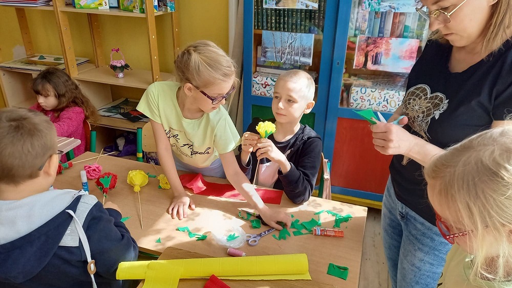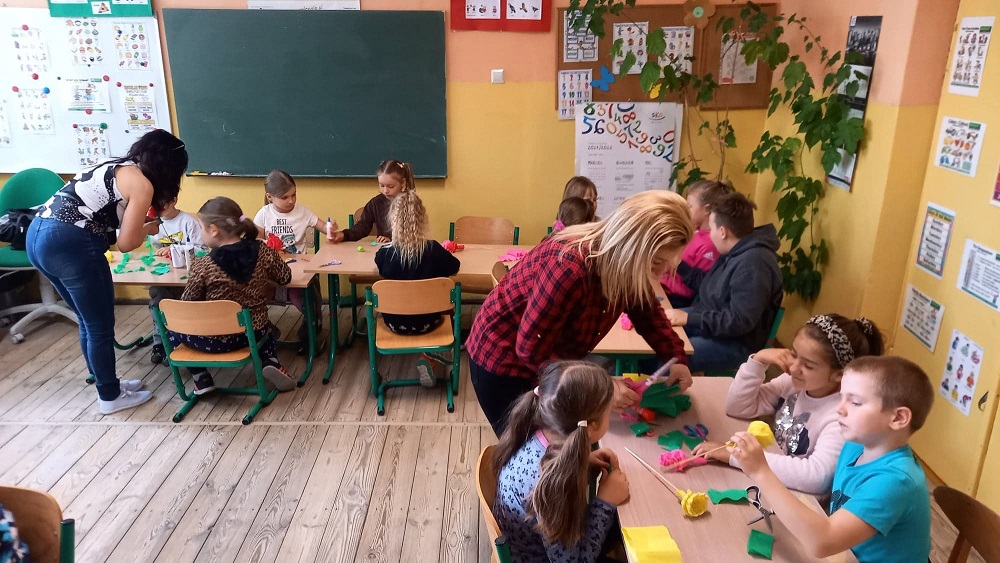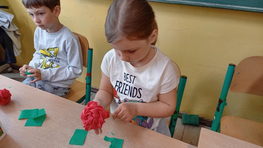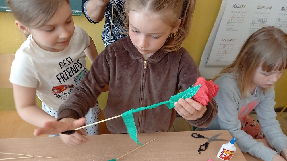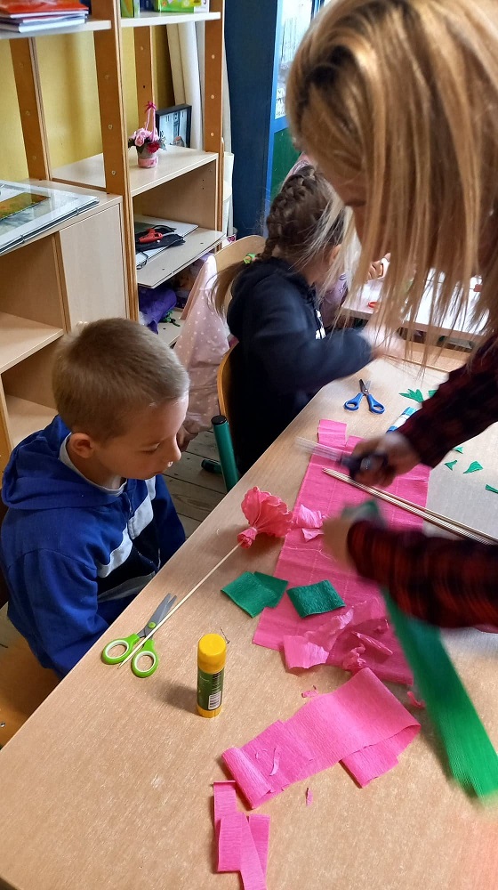 12 maja w naszej szkole odbyły się warsztaty florystyczne, które poprowadziły panie z KGW w Leszczynie Szlacheckim. W zajęciach uczestniczyły dzieci z klas 0-3 i wykonały kwiatki na Dzień Mamy. Bardzo dziękujemy Paniom za super warsztaty i prosimy o więcej.