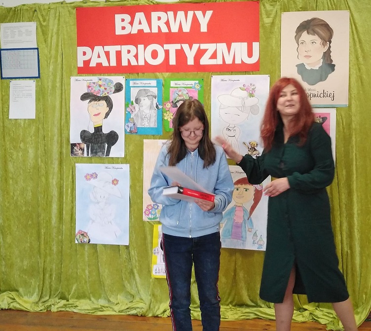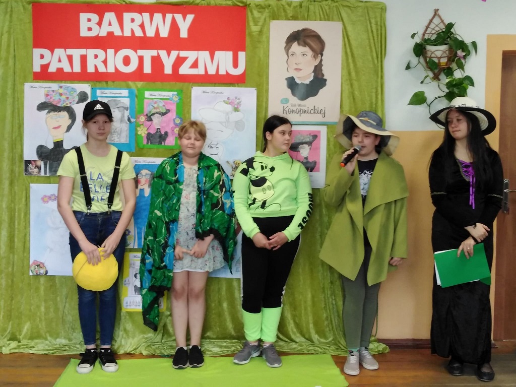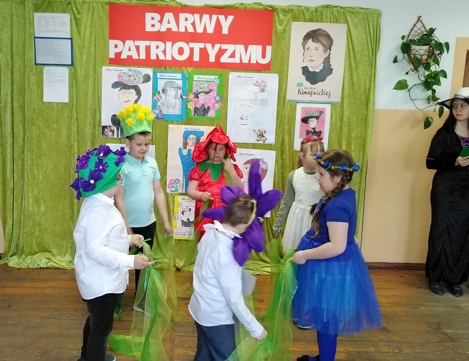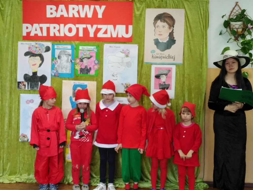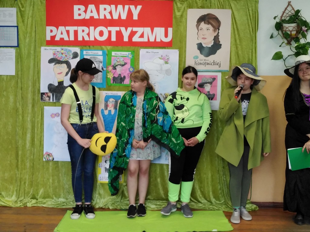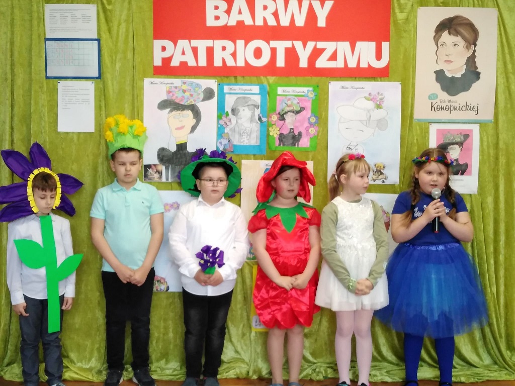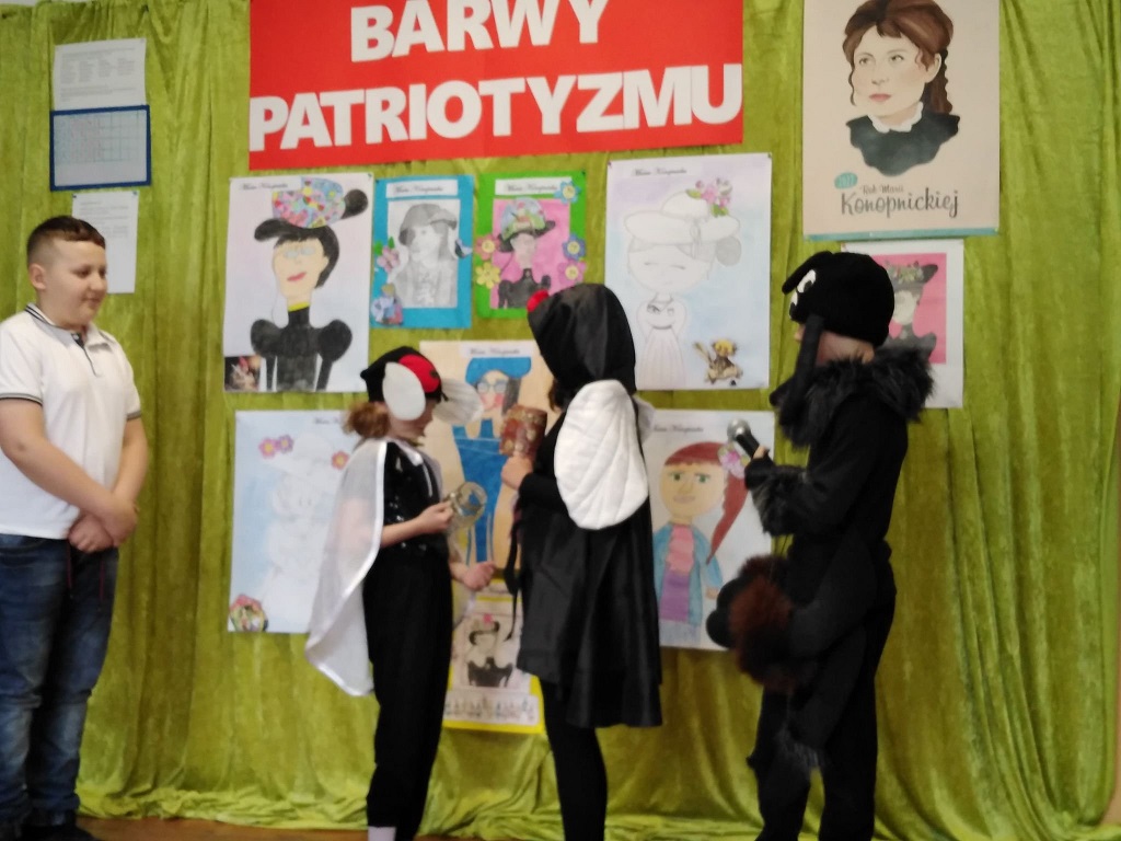 Po występach w ramach szkolnego projektu Barwy Patriotyzmu nastąpiło rozstrzygnięcie konkursów i wręczenie dyplomów oraz nagród. Zostali wyłonieni zwycięzcy konkursu za interpretację utworu Marii Konopnickiej- wygrał bezapelacyjnie oddział przedszkolny, konkursu plastycznego „Maria Konopnicka w oczach dziecka” (wszyscy uczestnicy zostali wyróżnieni: Aleksandra Szczepańska z kl. IV, Maja Pietrzak i Amelia Kowalska z kl. V, Nadia Różycka i Maja Kasińska z kl. VI oraz Ewa Ruskowalska, Andżelika Kowalska, Zofia Żurawska z kl. VII), konkursu plastycznego za ilustrację do Hymnu Polski - zwyciężyły kl. II i III za najwierniej wykonaną pracę pod względem historycznym oraz konkursu wiedzowego „Życie i twórczość Marii Konopnickiej” - Zofia Żurawska z kl. VII.