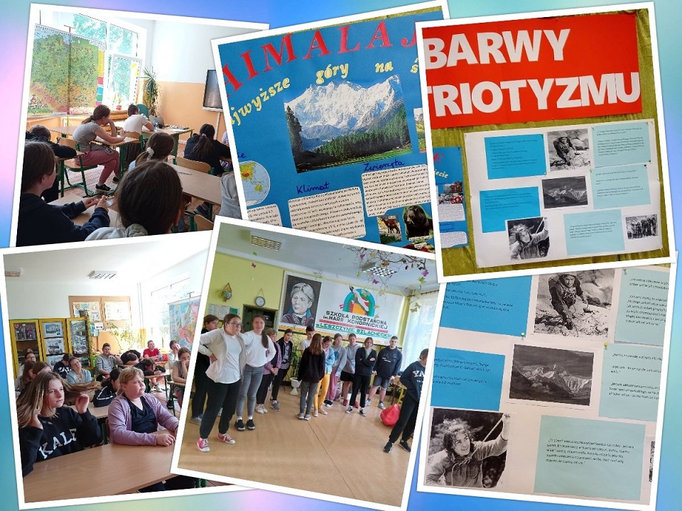 My również postanowiliśmy uczcić pamięć niezwykłej kobiety i zorganizowaliśmy sportowy „Dzień Wandy Rutkiewicz”. Członkowie SKKT-PTTK „Piegus” przygotowali gazetkę poświęconą Wandzie Rutkiewicz, jej dokonaniom i Himalajom. Obejrzeliśmy film pt. „Himalaiści 03 Karawana marzeń - Wanda Rutkiewicz”. Na zajęciach wychowania fizycznego uczniowie klas 1-8 zmagali się z konkurencjami wymagającymi siły. Okazało się, że to nie takie proste wspinanie się na szczyty górskie ale zabawa była super. Może wśród naszych uczniów rośnie przyszły himalaista lub przyszła himalaistka.